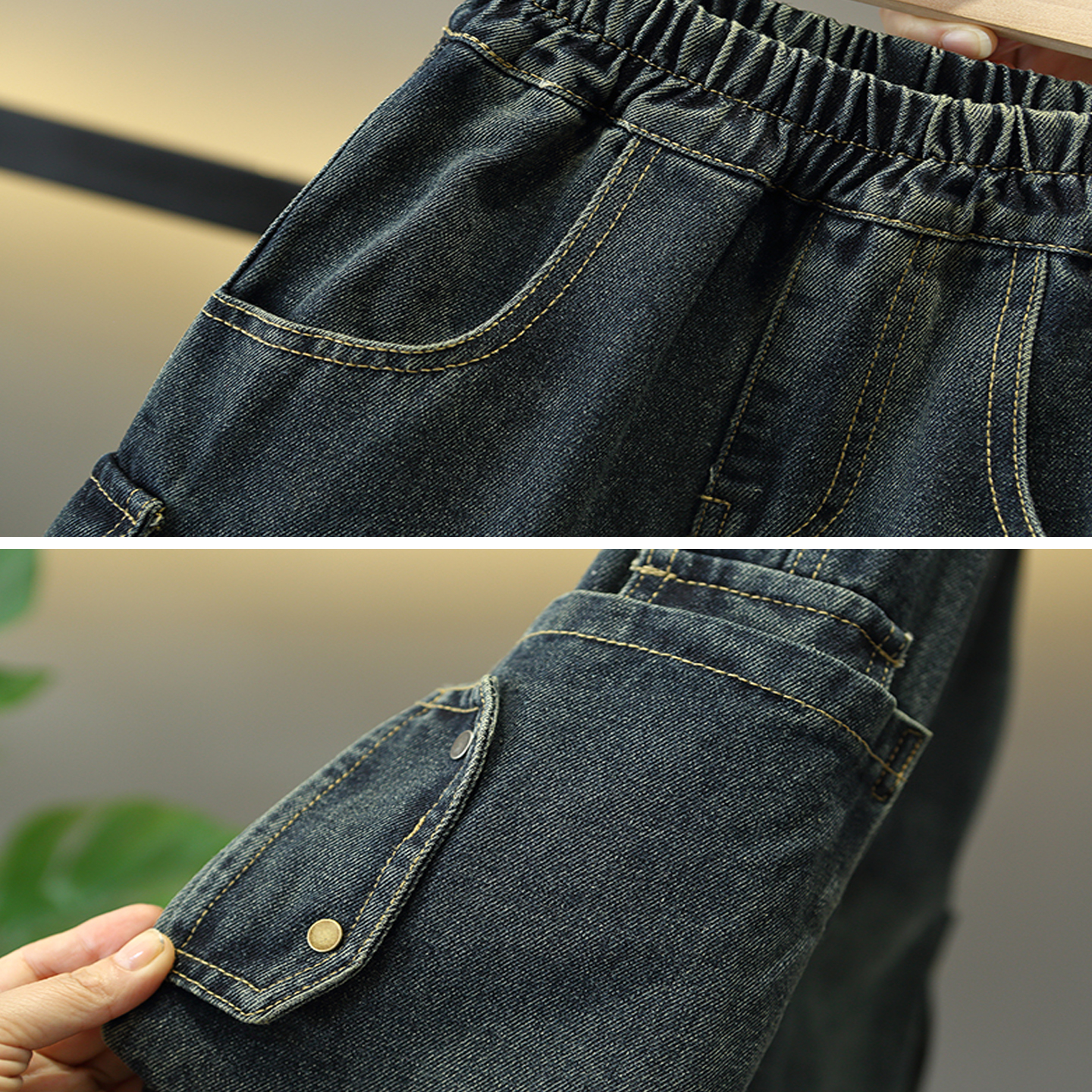 男童春秋装裤子2025新款儿童秋季时髦工装裤宝宝韩版洋气牛仔裤潮