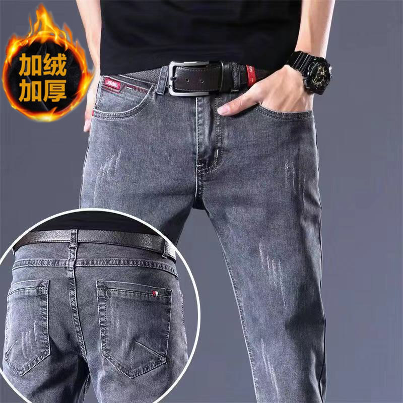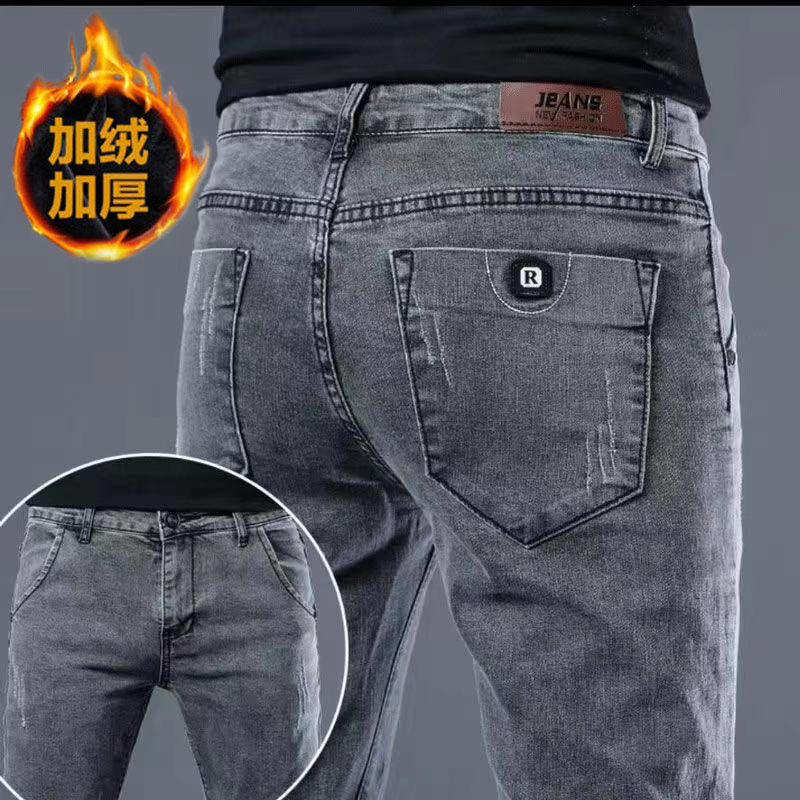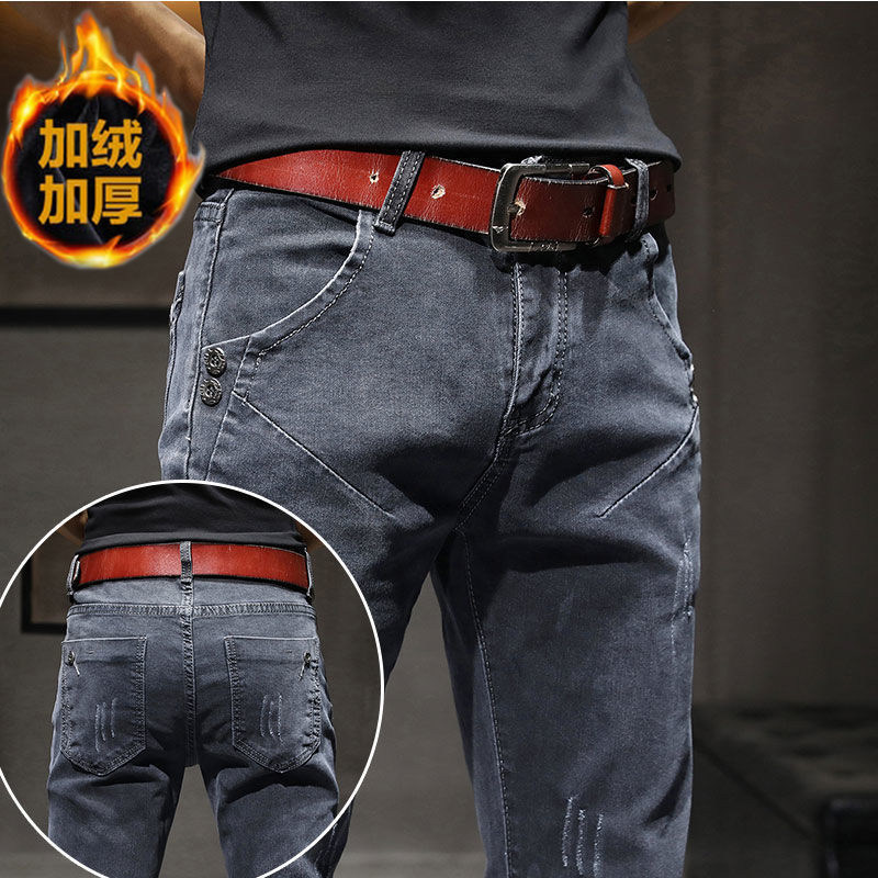 秋冬款加绒加厚男士牛仔裤男韩版潮流修身小脚裤男弹力休闲长裤子