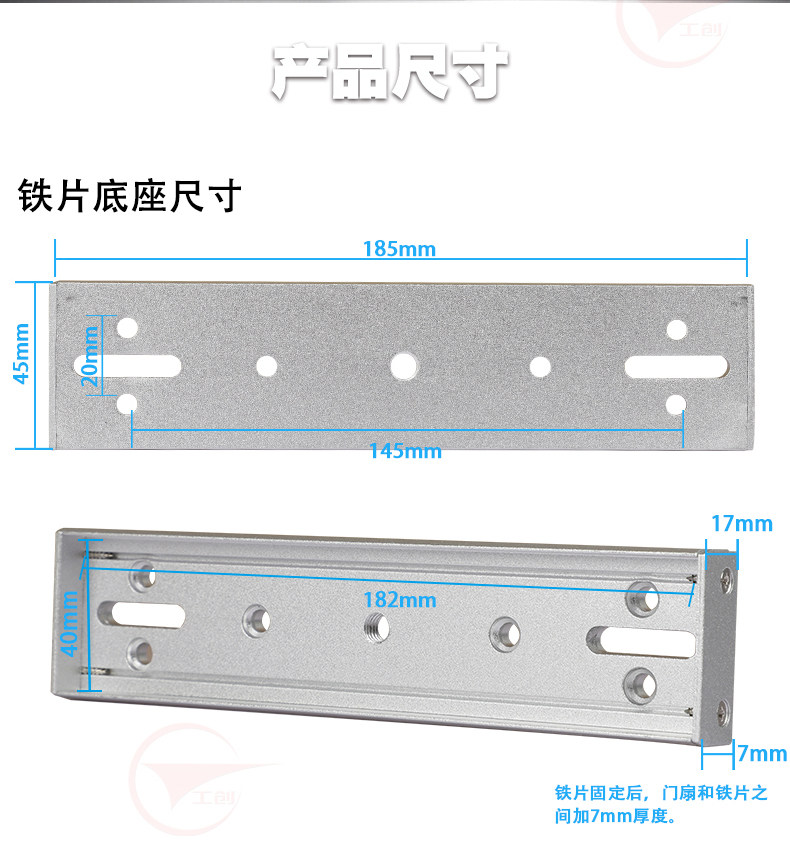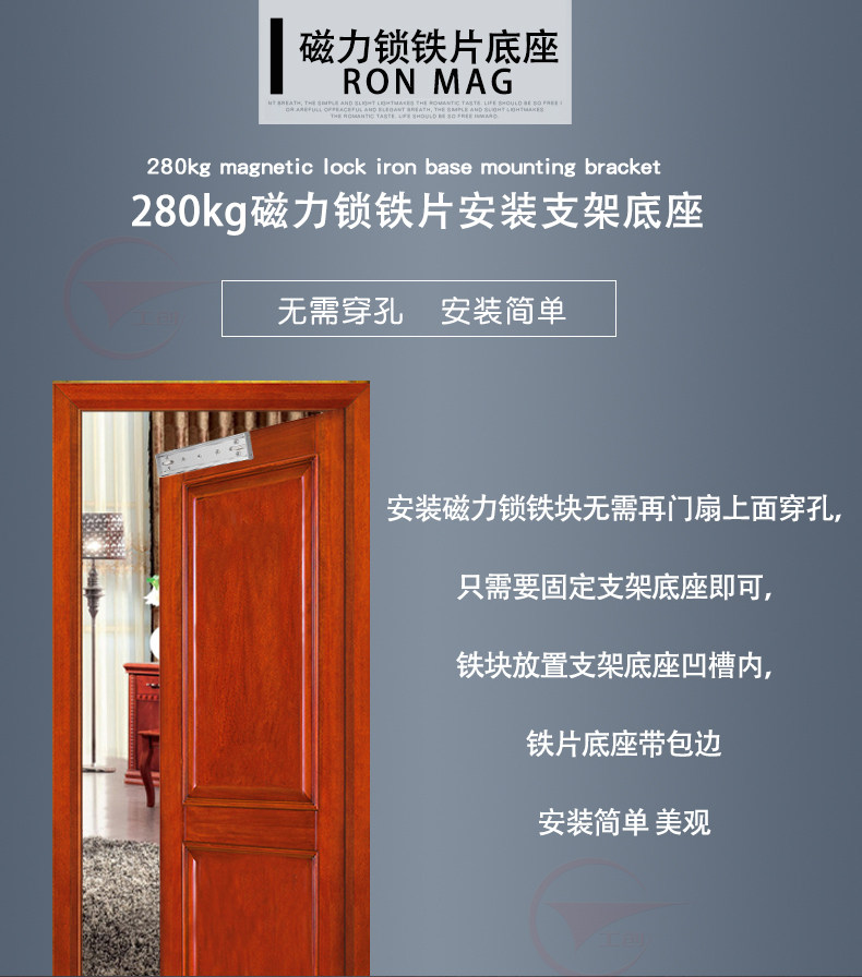 工创磁力锁铁片底座支架280KG公斤磁力锁铁块支架木门支架底座
