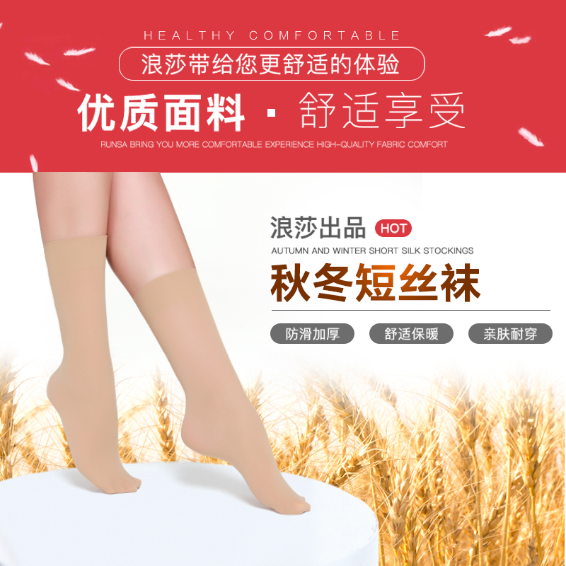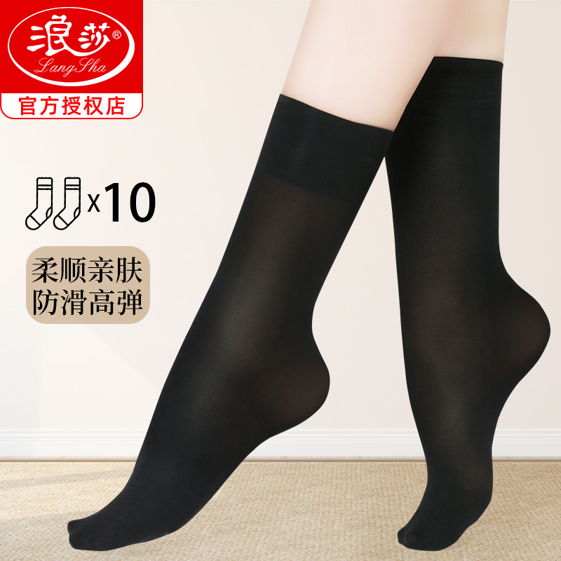 浪莎短丝袜女春秋季黑色透明中筒女士短袜秋冬款加厚不透肉袜子女