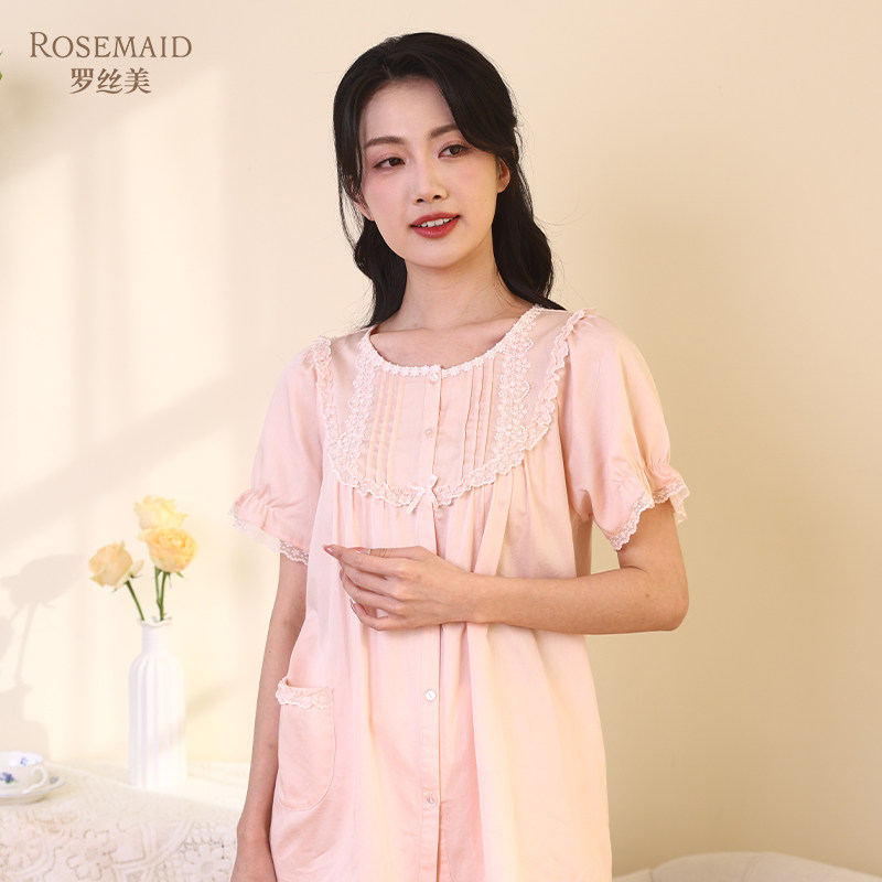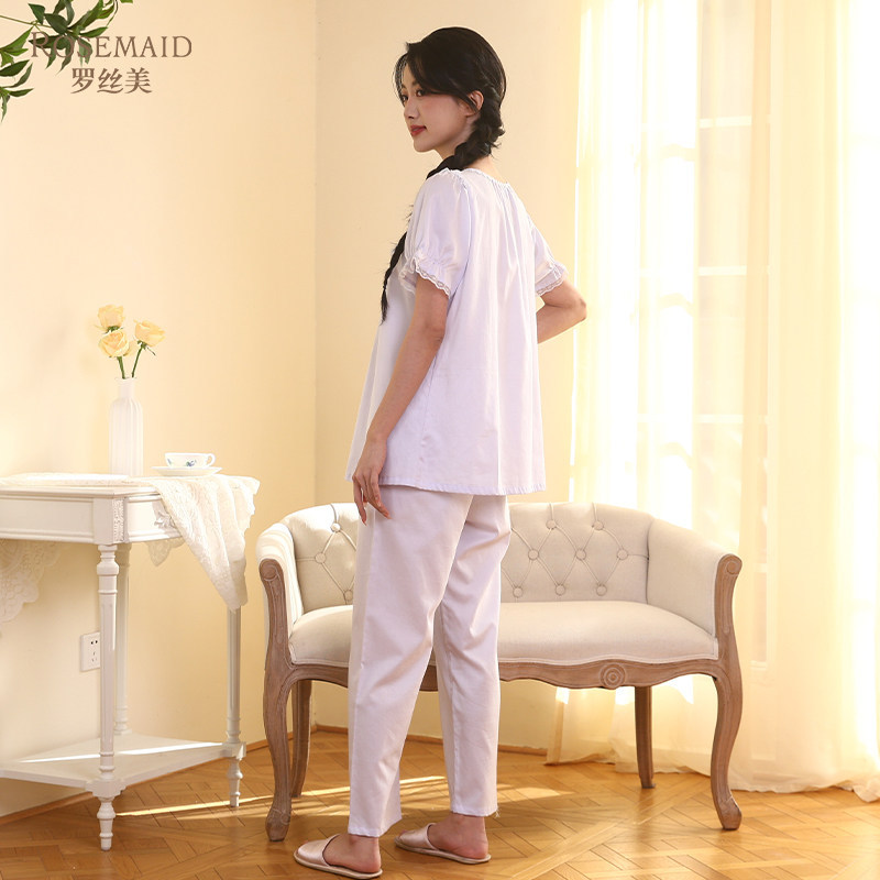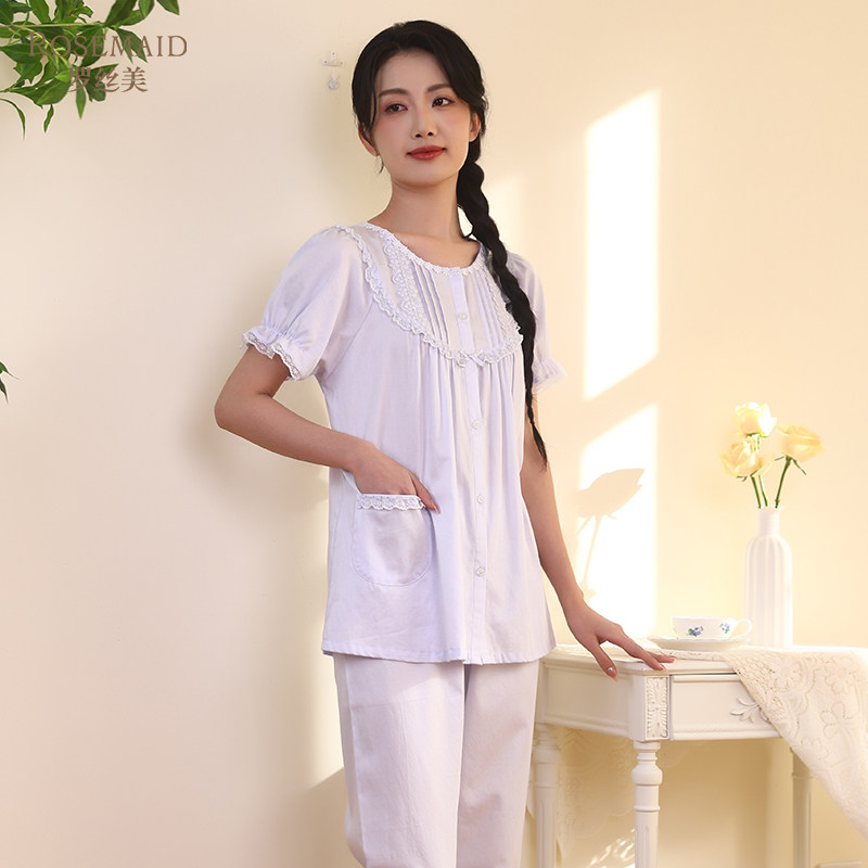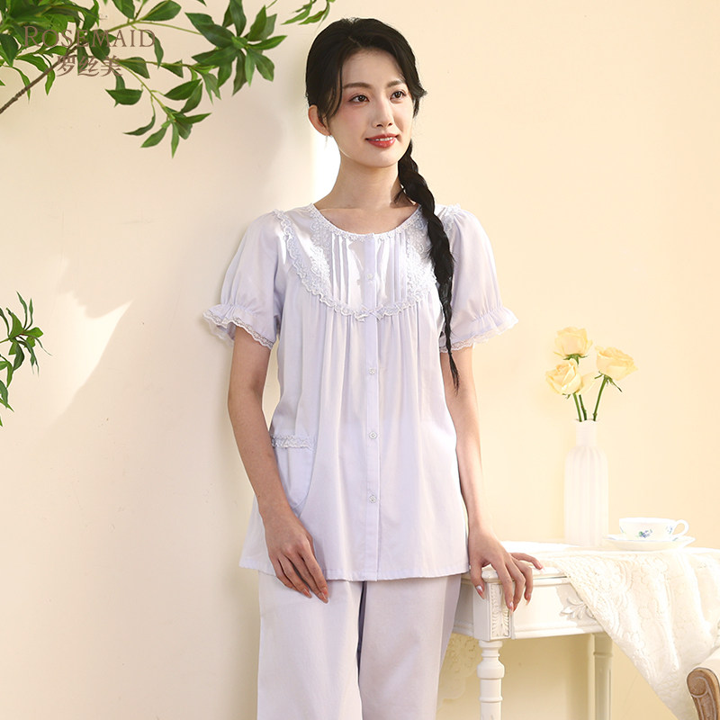 伊丝芬2025春夏新款35065纯棉60支贡缎圆领短袖睡衣套装家居服女