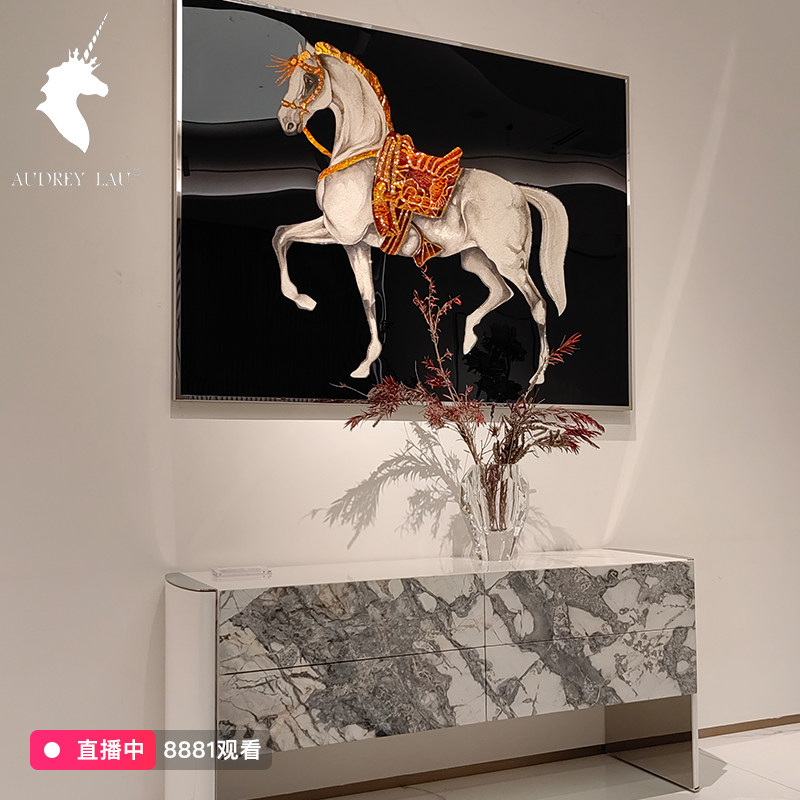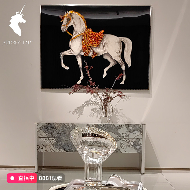 施华洛世奇水钻镶嵌骏马装饰画客厅轻奢马到成功挂画高档大气壁画