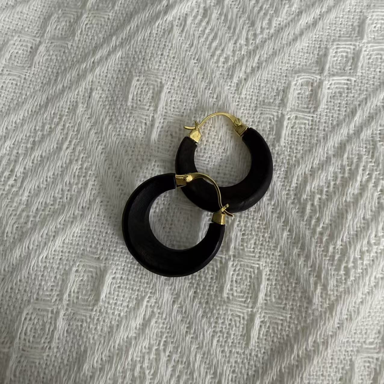 日本品质25新款法式复古檀木耳环轻奢百搭简约个性耳钉小众气质设