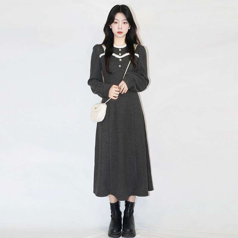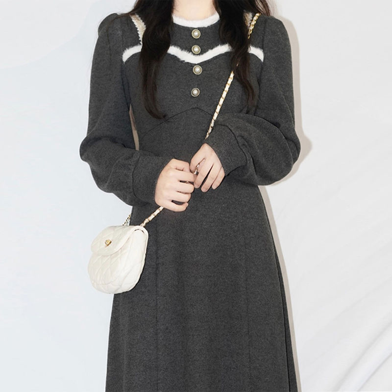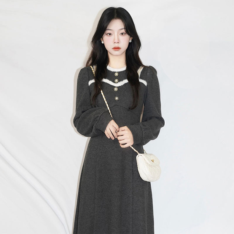 设计感连衣裙秋冬女中长款2022时尚新款收腰显瘦法式气质高腰长裙