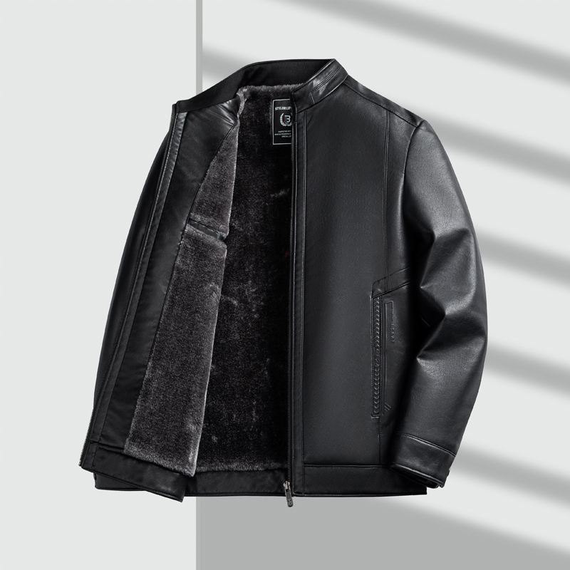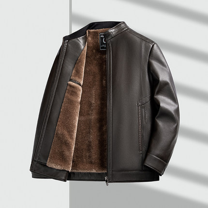 2025冬季新款男士立领加绒皮衣男外套中老年加厚皮衣保暖爸爸装