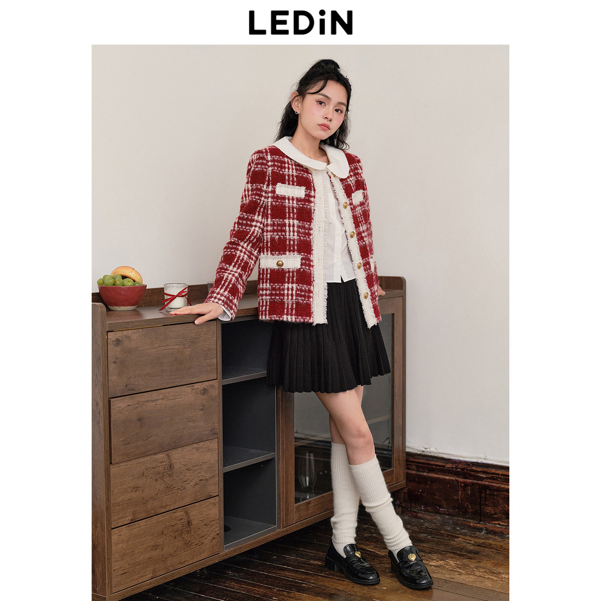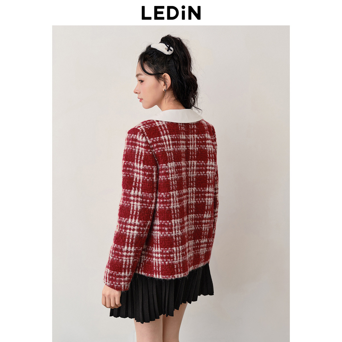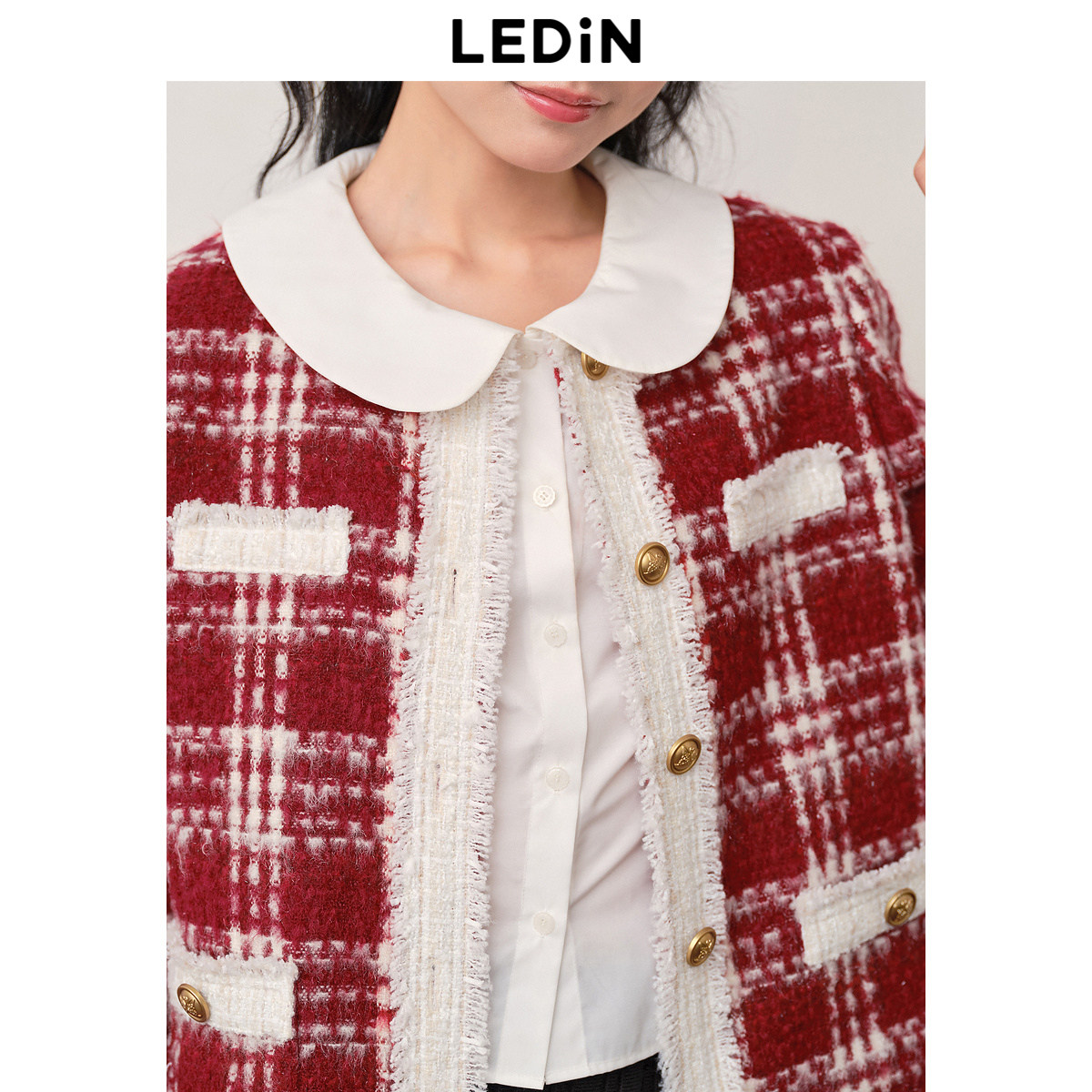 【反季清仓】乐町格纹小香风短外套女千金少女感毛呢外套小个子