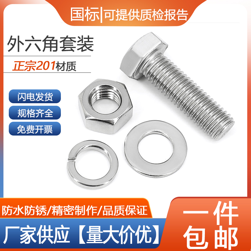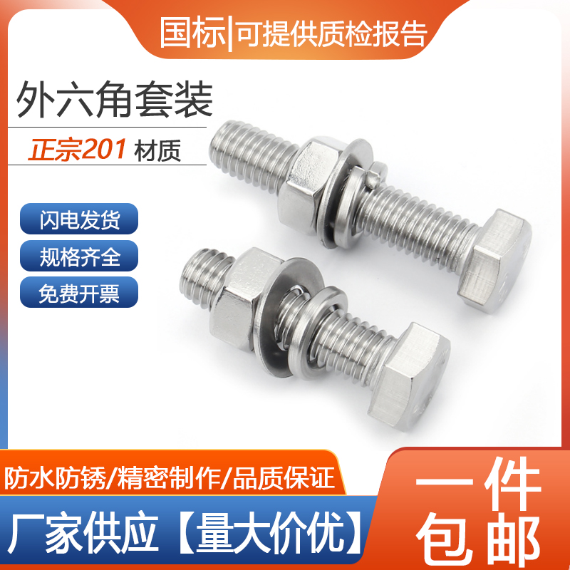 201不锈钢外六角螺栓螺母套装螺丝垫片全M6M8M10M12M14M