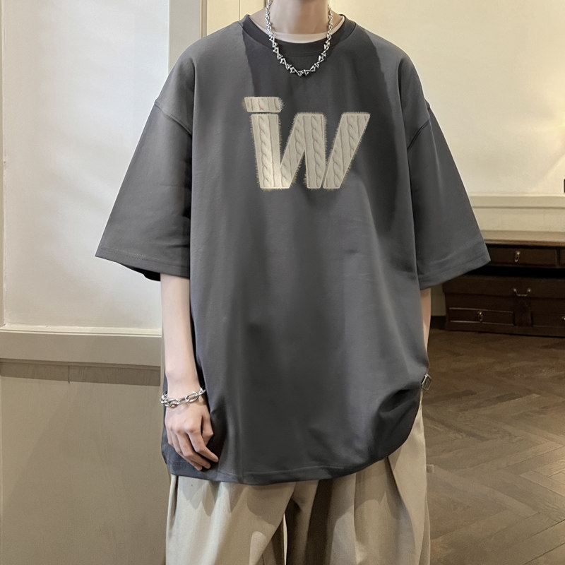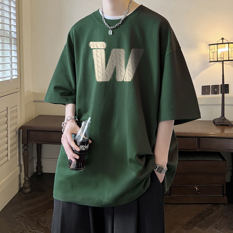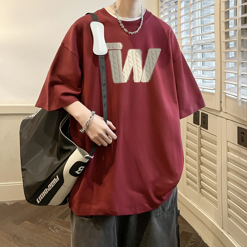 纯棉短袖T恤男士2-半袖休闲百搭夏季新款圆领印花体恤ins夏美式