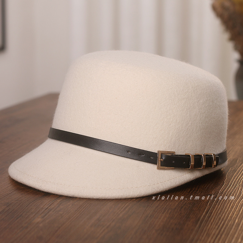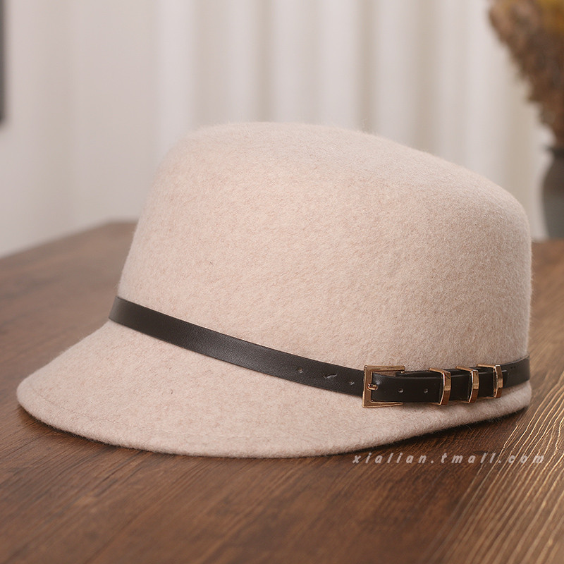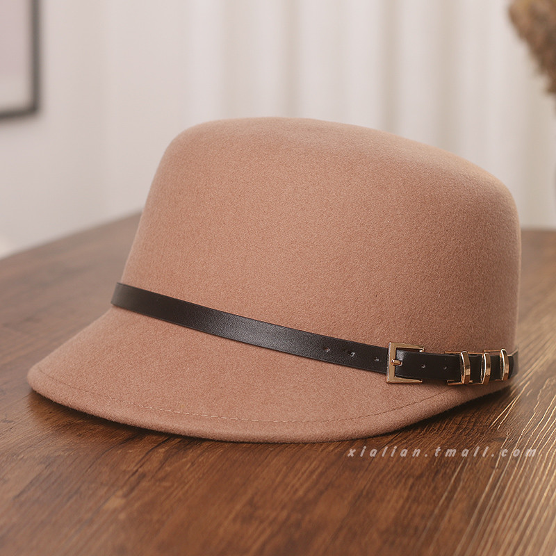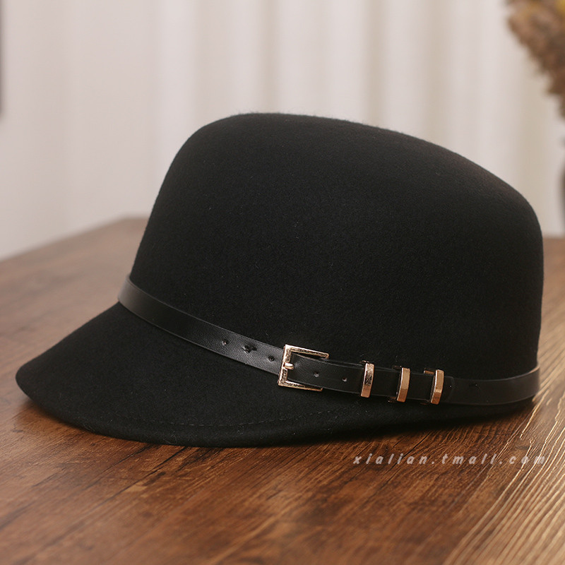 皮带扣羊毛呢马术帽女秋冬英伦复古黑色骑士帽显脸小时尚鸭舌帽潮