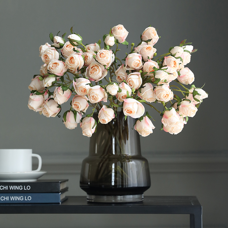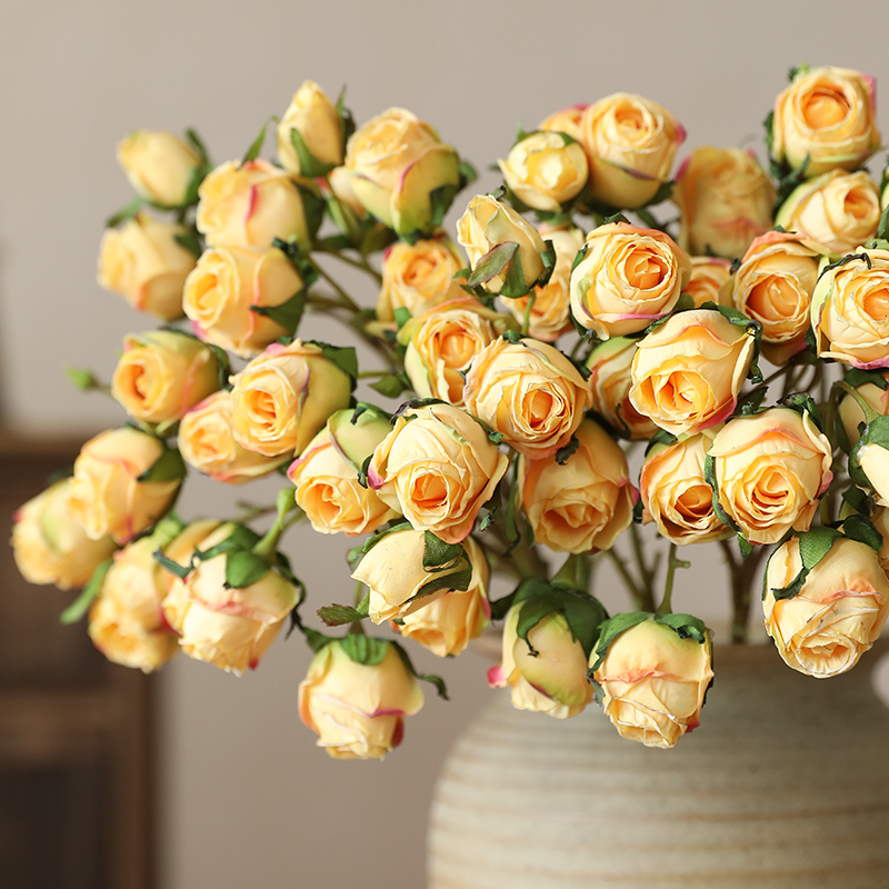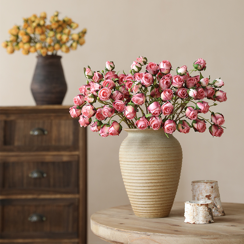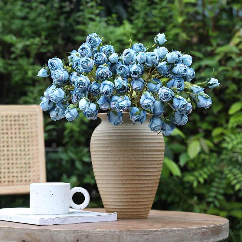 ins多头焦边玫瑰仿真花假花仿干花单枝摆设客厅餐桌插花摆件装饰