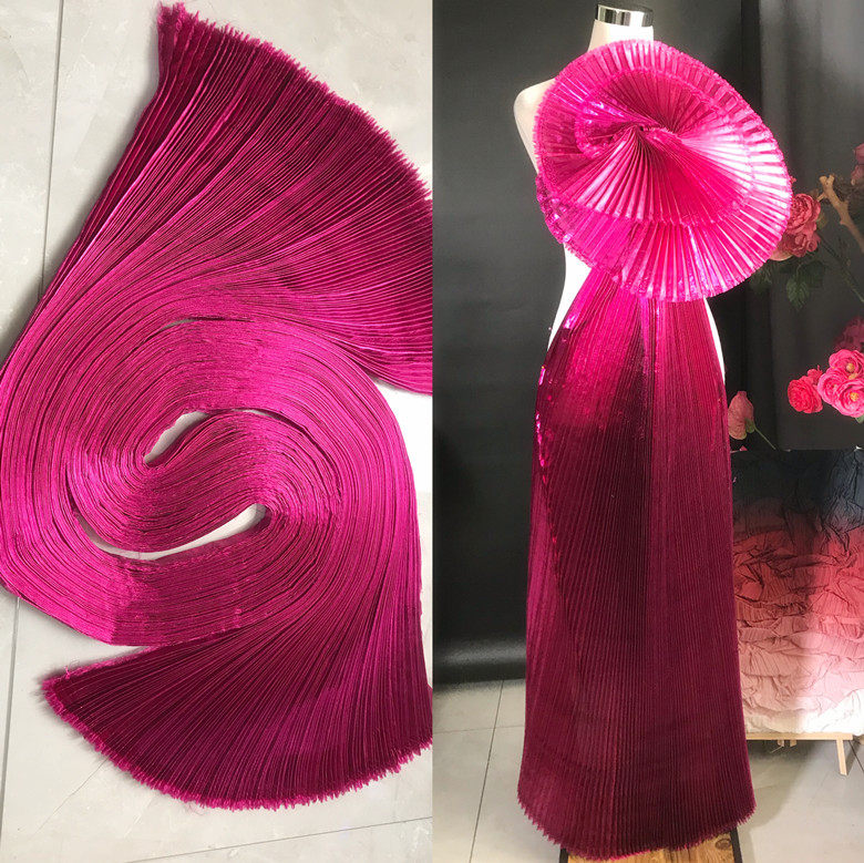 金属光泽大风琴褶皱布料婚庆百褶金属装饰造型设计师背景面料