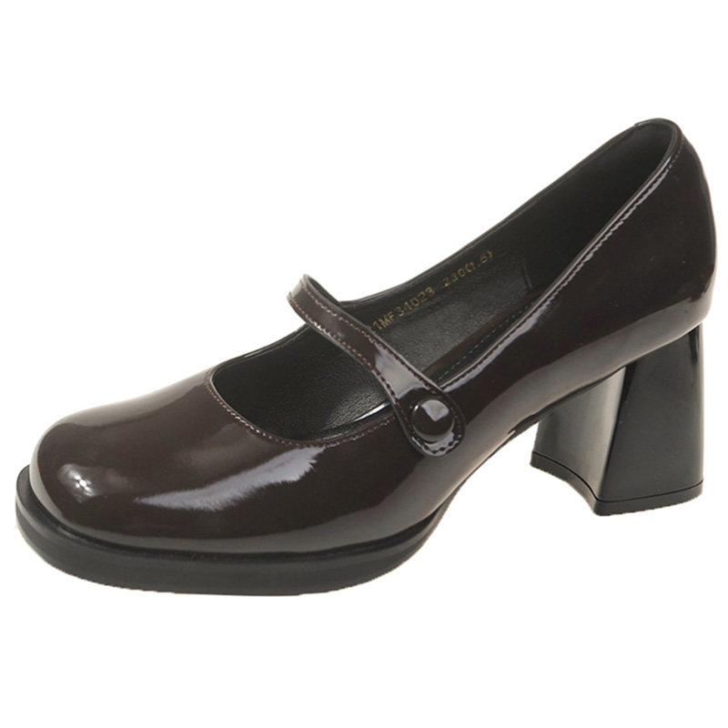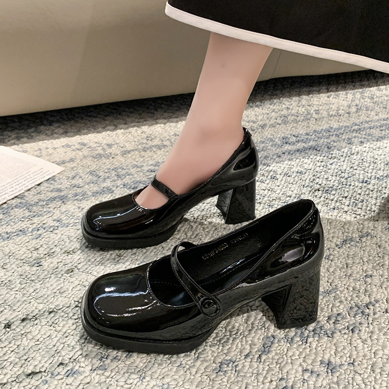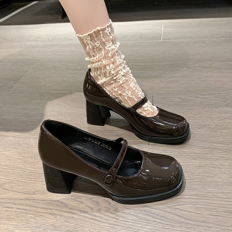 高跟玛丽珍粗跟浅口百搭小皮鞋女