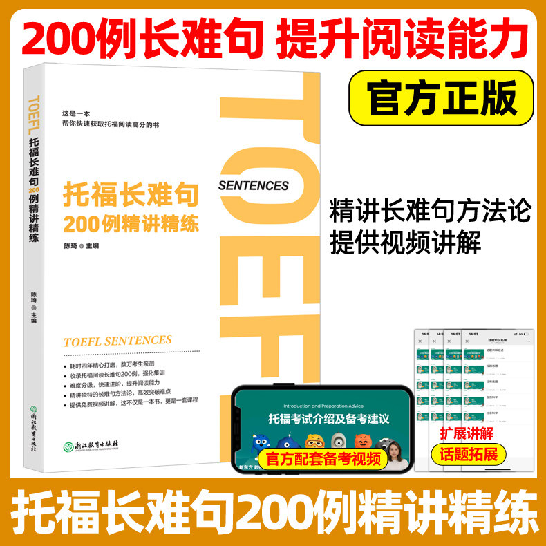 新东方 托福长难句200例精讲精练+托福阅读高频50篇精讲 陈琦 托福阅读翻译 TOEFL方法论 语法精讲分析托福考试真题官方备考资料
