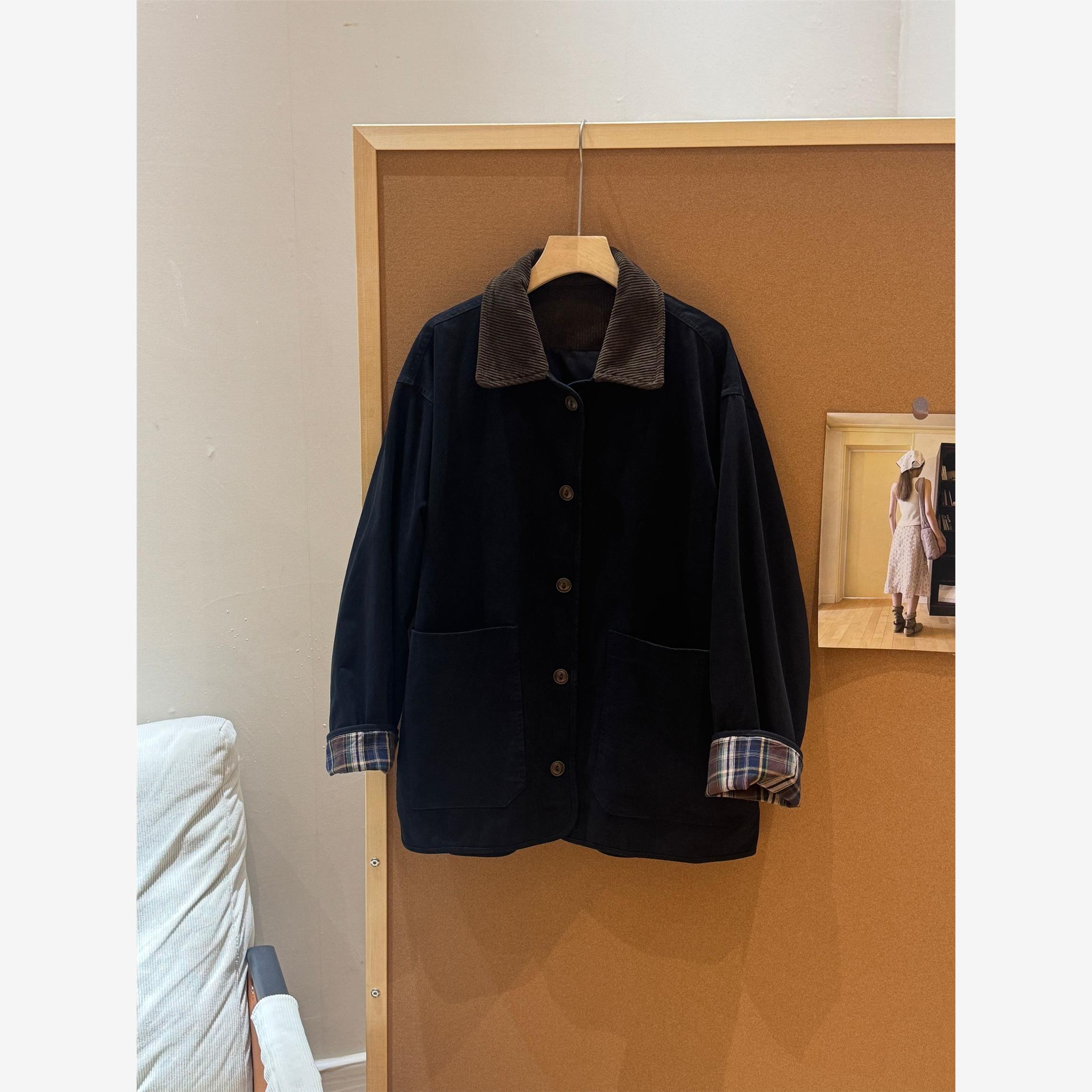 日韩系2025简约大气百搭撞色翻领外套女早秋宽松短款工装夹克风衣