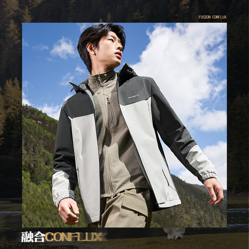 361运动外套2026春季新款男士梭织加绒连帽保暖上衣户外运动夹克