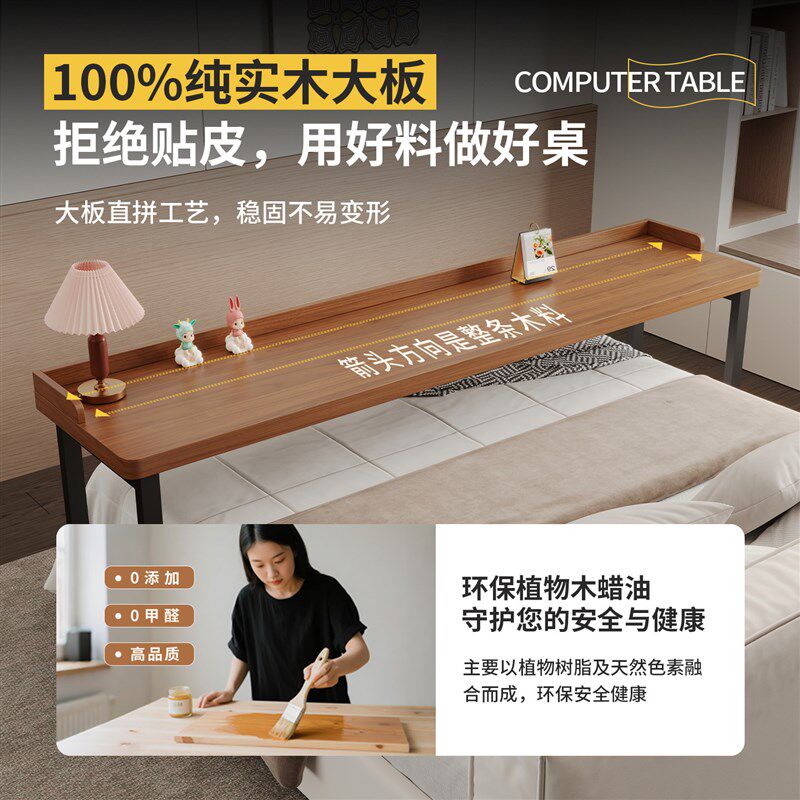 实木书桌可移动跨床桌小户型长条床边桌双人学习桌子床上工作台