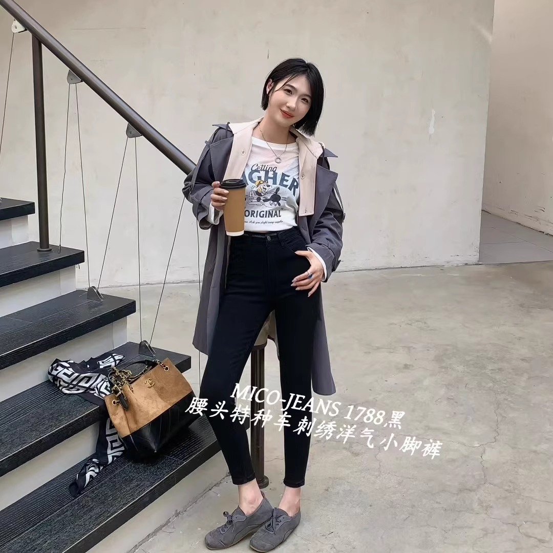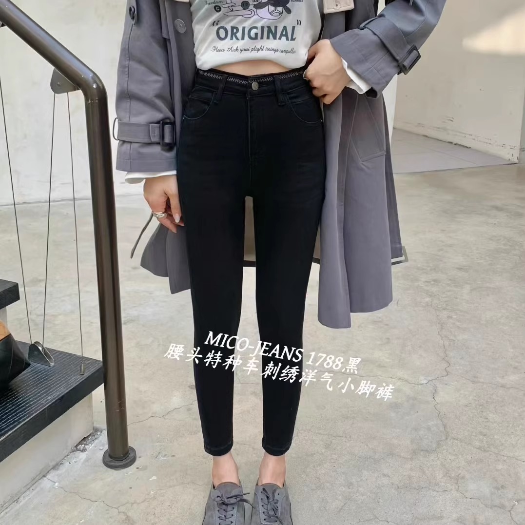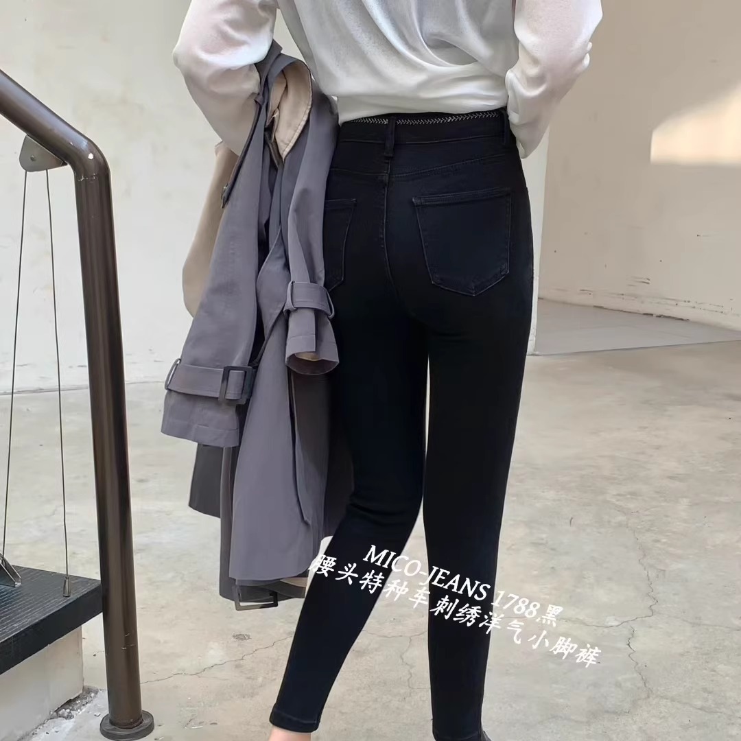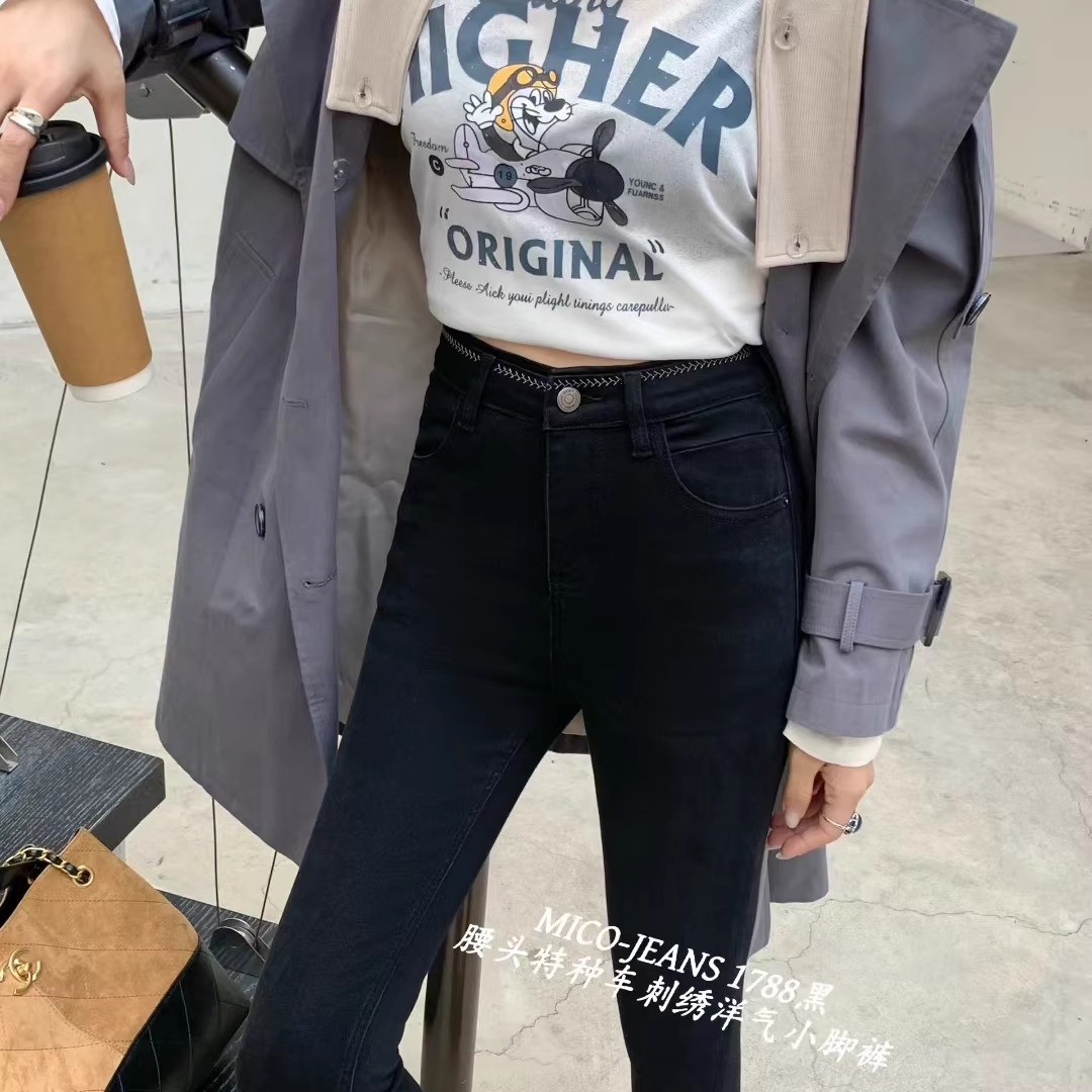 MICO1788腰头刺绣弹力小脚牛仔裤女25秋季修身显瘦紧身九分铅笔裤