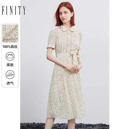 【100%桑蚕丝】FINITY菲妮迪夏季真丝连衣裙黑色中长款裙子