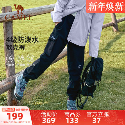 骆驼户外冲锋软壳裤男女2025秋冬防风防泼水加绒保暖束脚工装裤