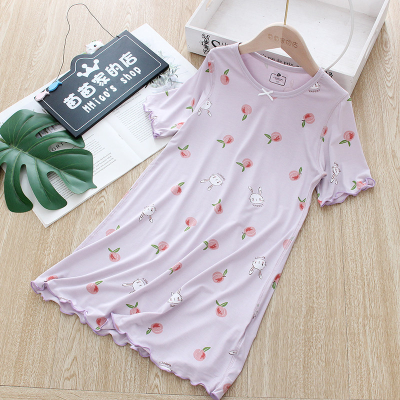 女童莫代尔短袖睡裙儿童夏季薄款家居服宝宝可爱卡通睡衣中大童
