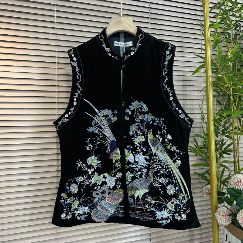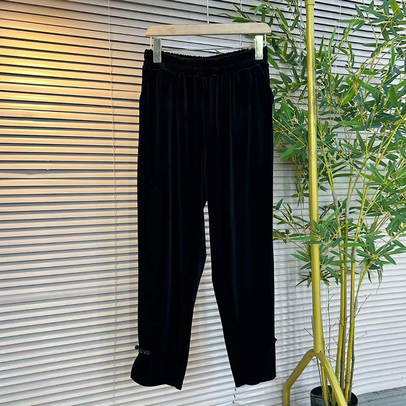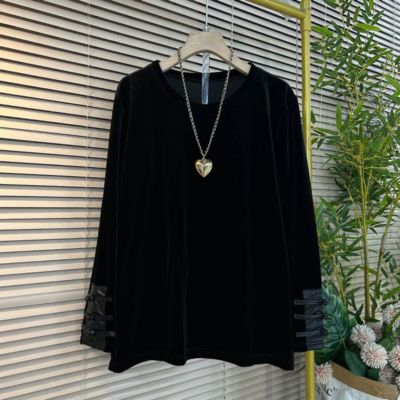 大码女装长袖打底衫马甲立领盘扣马甲松紧腰宽松遮胯休闲百搭长裤