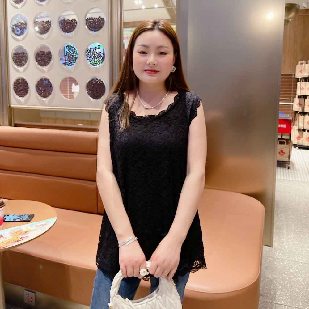 甜觅大码女装2023夏装胖mm300斤淑女中长款打底背心蕾丝衫DF