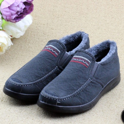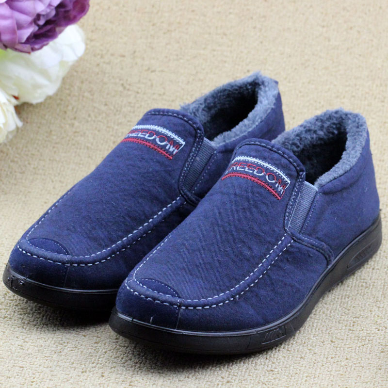 老北京布鞋男冬季加绒保暖棉鞋大码一脚蹬爸爸鞋加厚防滑老年棉鞋