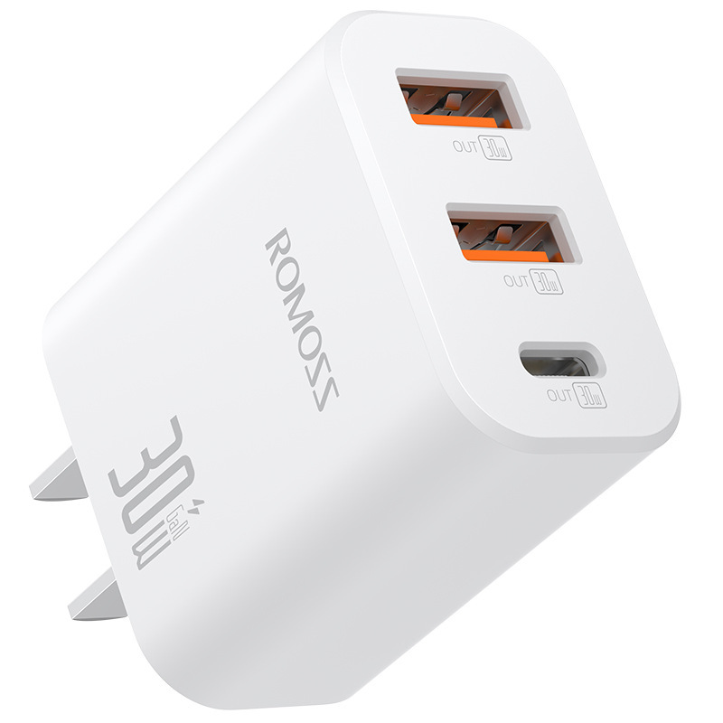 罗马仕氮化镓充电器快充PD30W三口USB充电头适用苹果华为