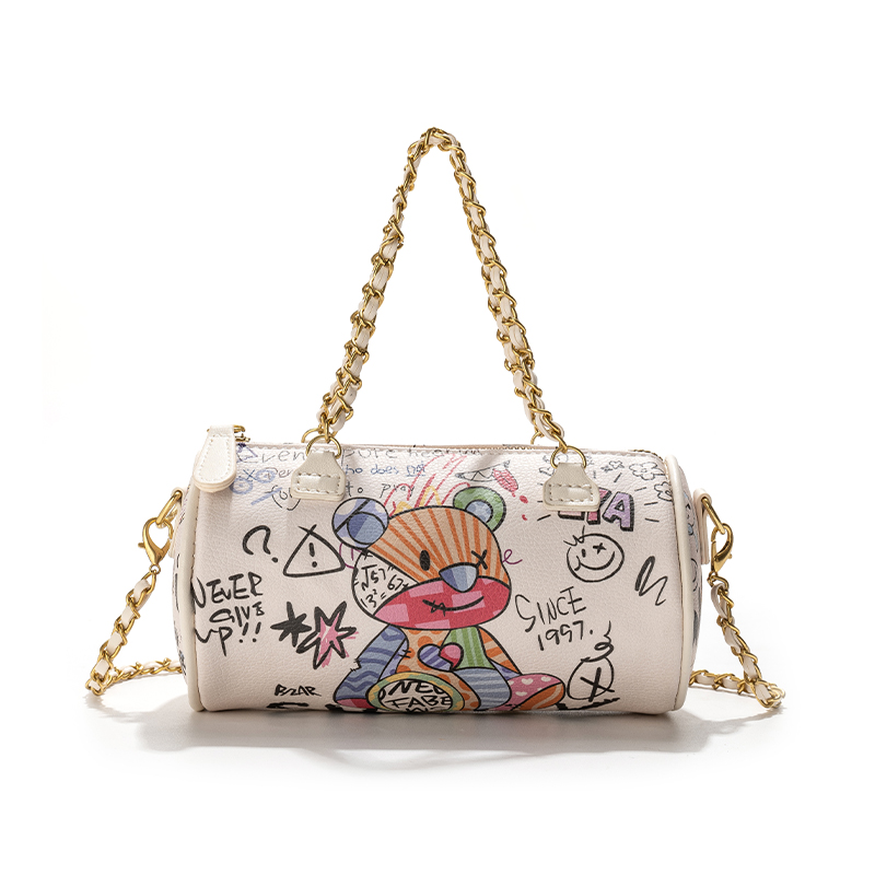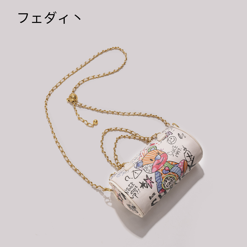 日本フェダィ丶2025新款小熊涂鸦圆筒包高级感腋下单肩链条斜挎包