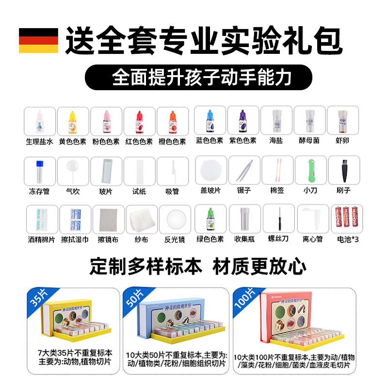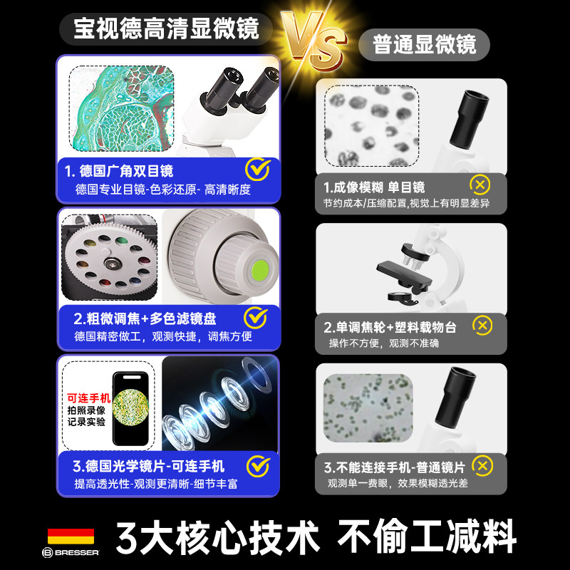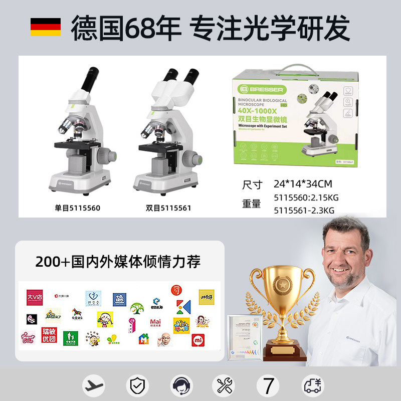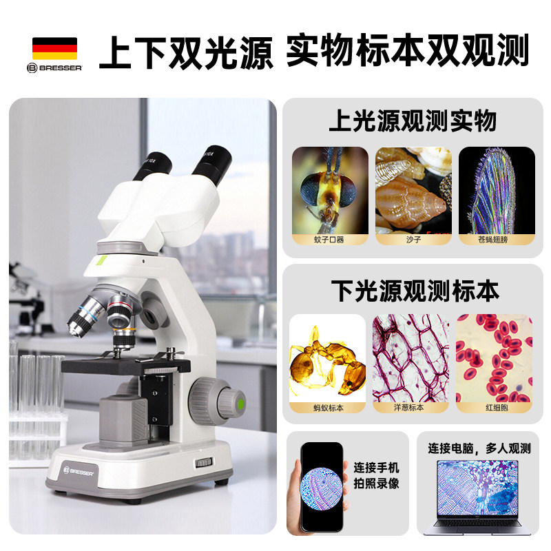 德国宝视德双目高清显微镜高倍家用中小学生实验可看细菌生物礼物