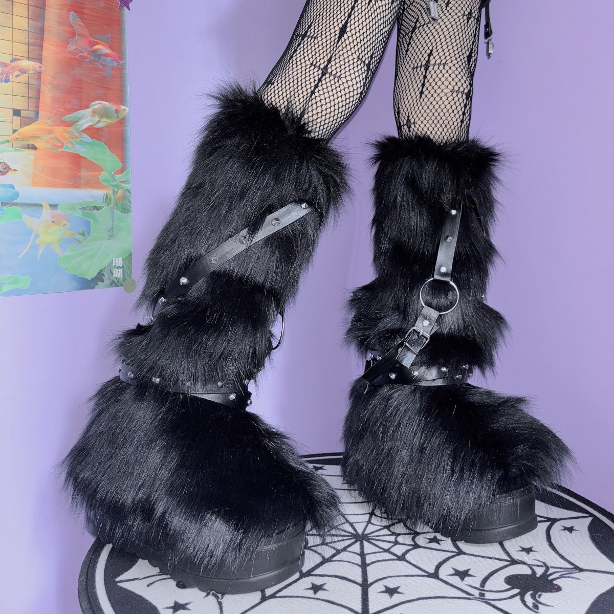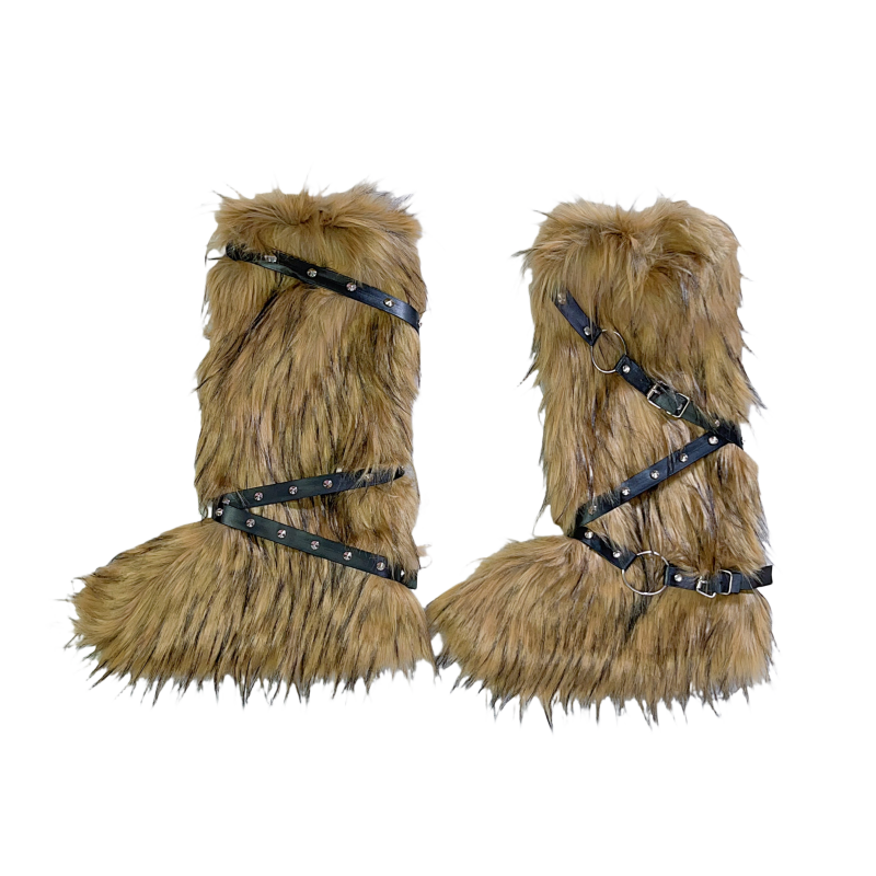 一秒变靴子 Y2K辣妹亚比仿皮草欧美朋克保暖皮带男女团高筒袜腿套