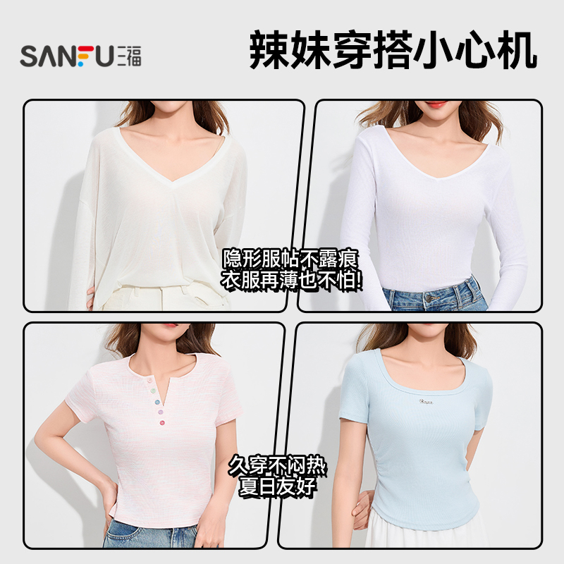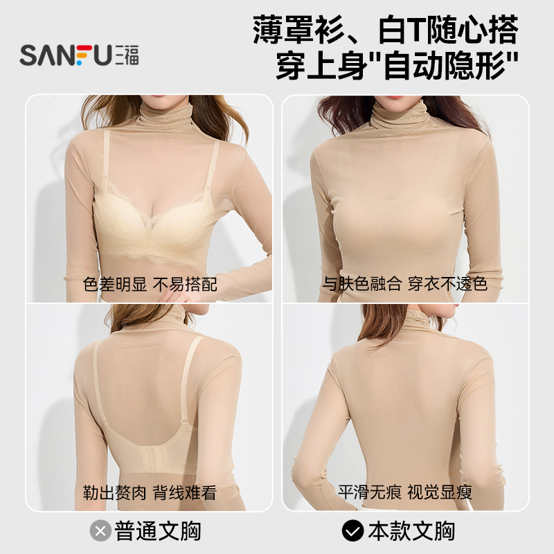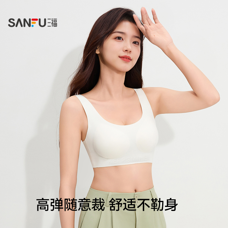 三福无痕薄杯无钢圈聚拢文胸防透肤抗菌固定杯罩背心内衣女495019