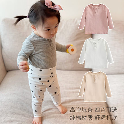 女童坑条秋衣 婴儿打底衫秋装女宝宝t恤上衣小童纯棉婴幼儿衣服