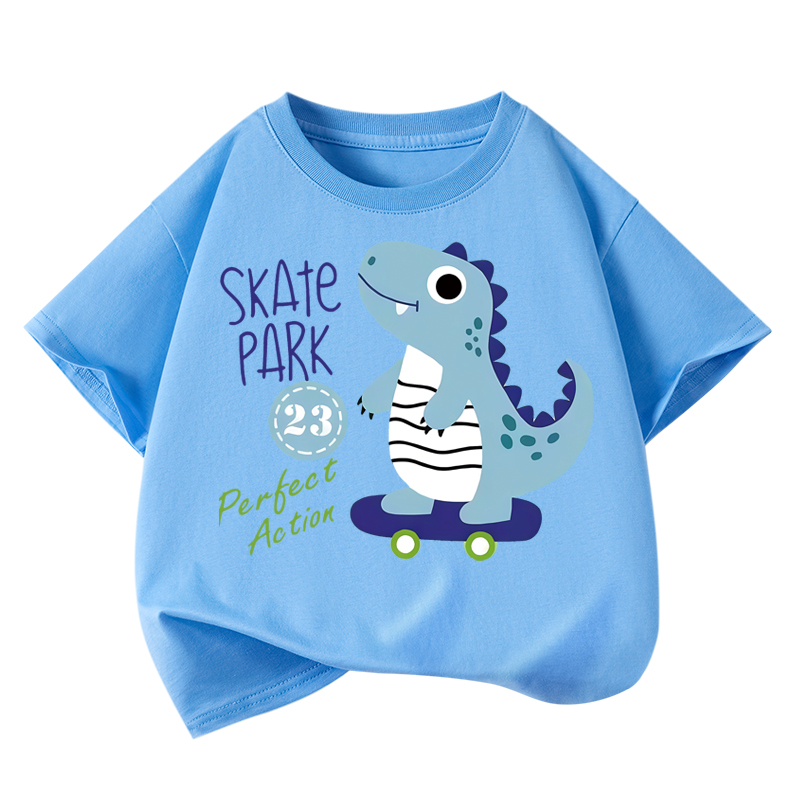 男童纯棉短袖t恤2025卡通恐龙印花半袖夏季宽松版男孩圆领上衣潮