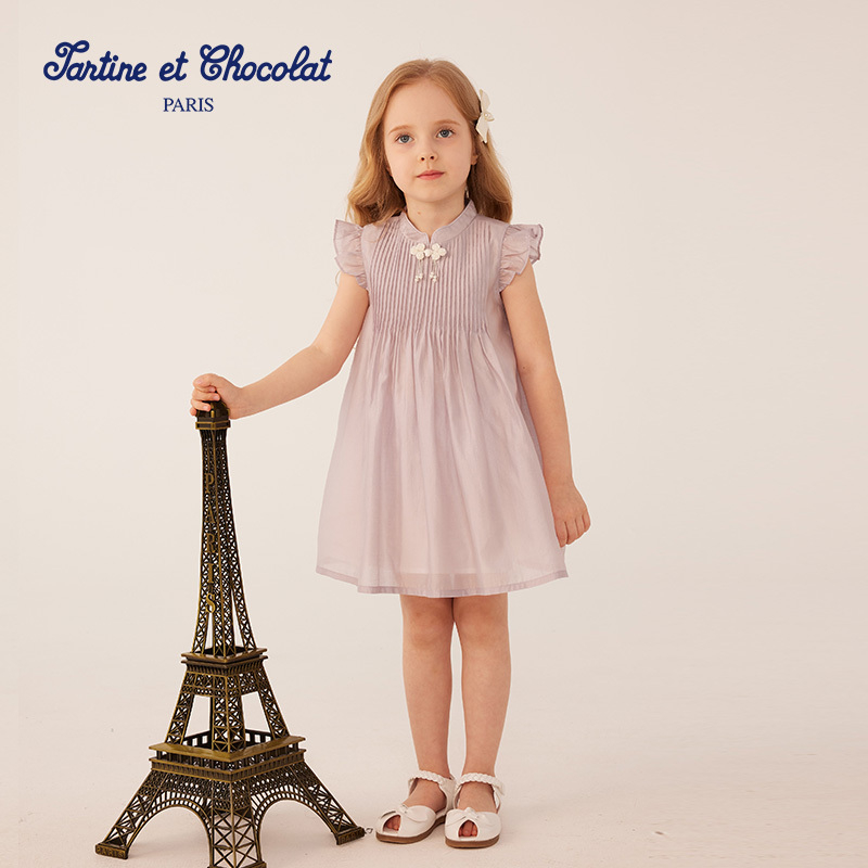 tartineetchocolat法国巧克力童装25夏季新款女童新中式连衣裙