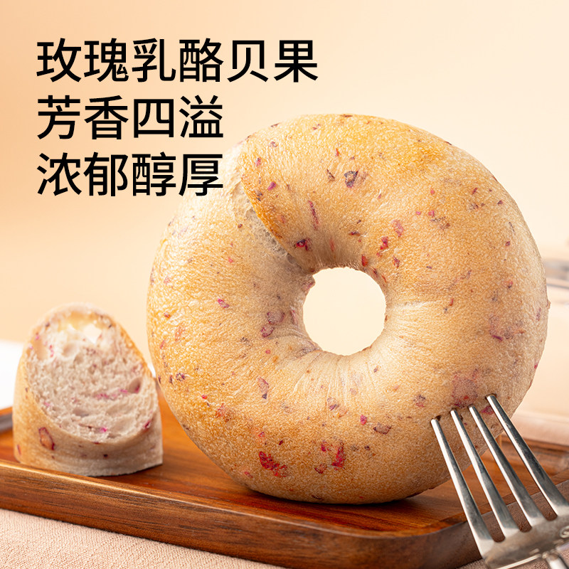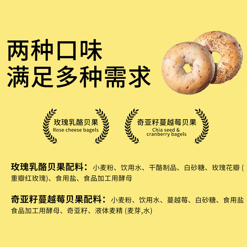 德芮一周六个贝果面包玫瑰乳酪+奇亚籽蔓越莓早餐下午茶 冷冻保存