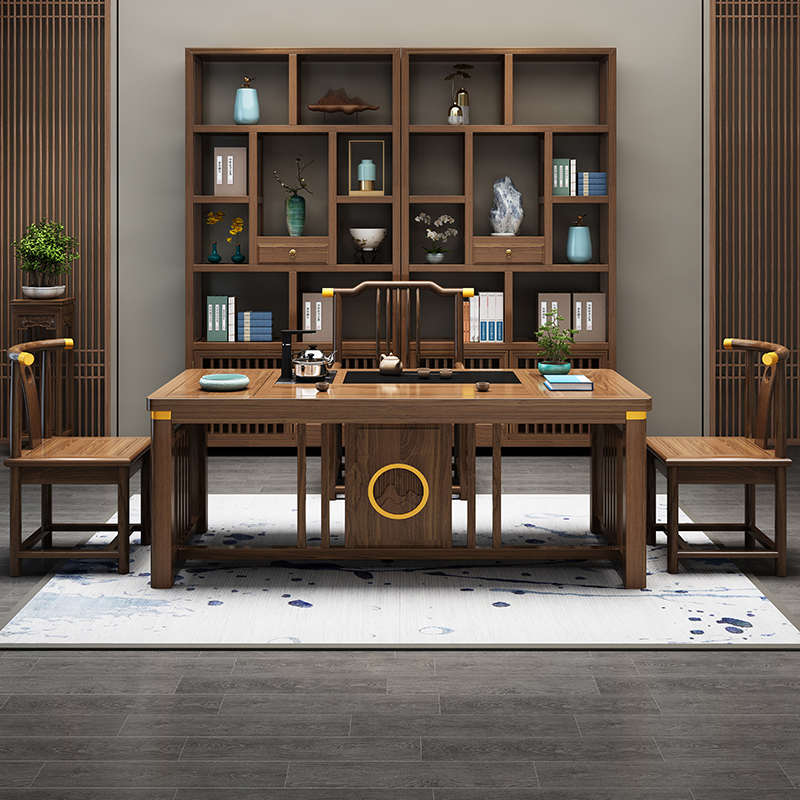 新中式茶桌椅组合办公室实木泡小茶台简约现代茶具套装家用喝茶桌