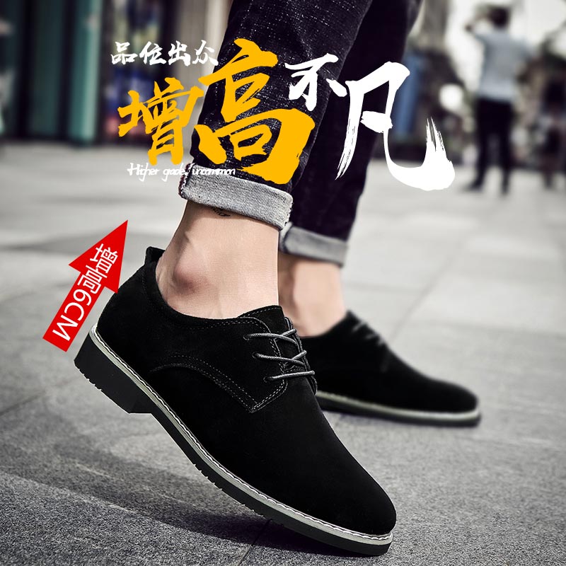 内增高6cm真皮英伦风反绒皮男鞋秋季休闲皮鞋小码男增高鞋36 37