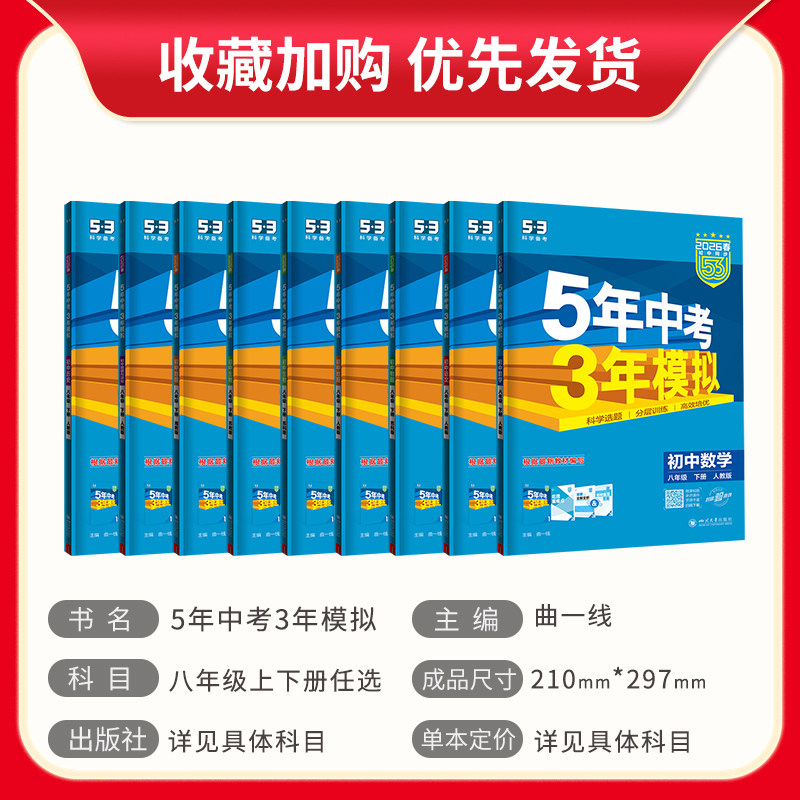 江苏版2026版五年中考三年模拟八年级上下册数学语文英语物理生物政治历史地理译林苏科人教版初二8年级同步练习册5年中考三年模拟