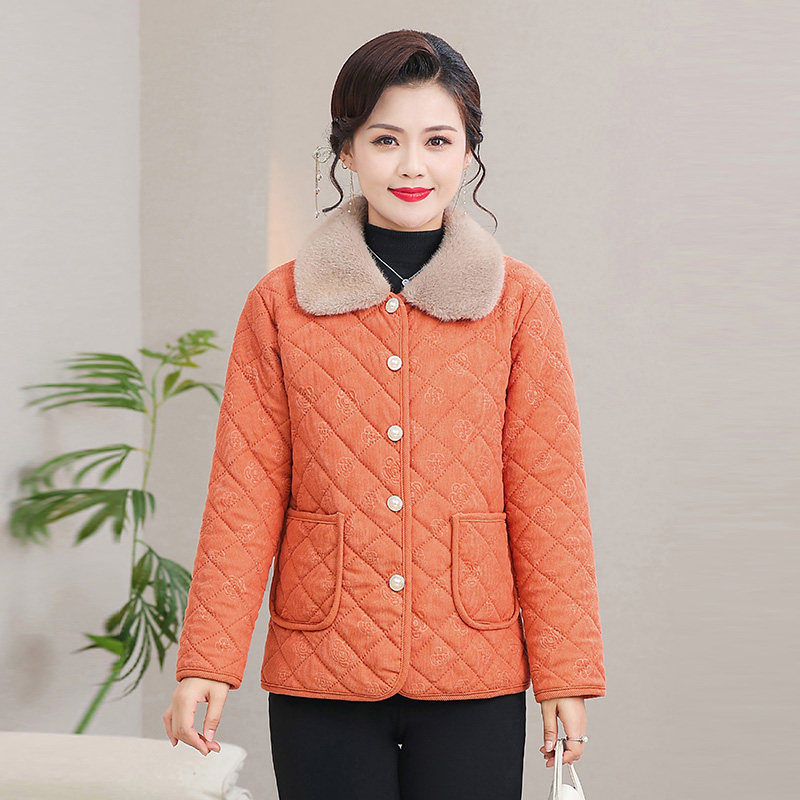 新款加绒棉服短款中老年女装保暖洋气棉衣外套妈妈装百搭加厚棉袄