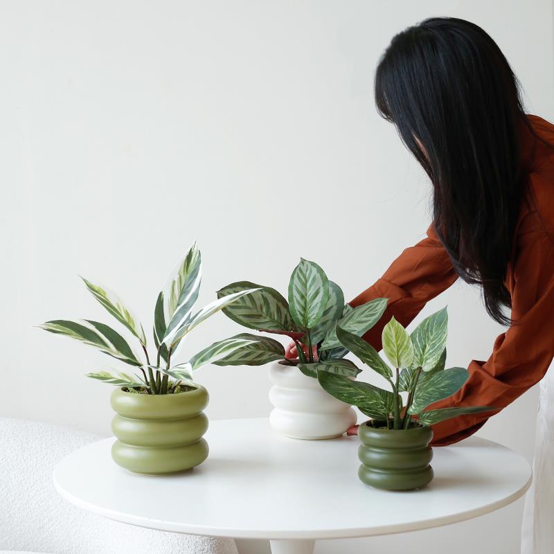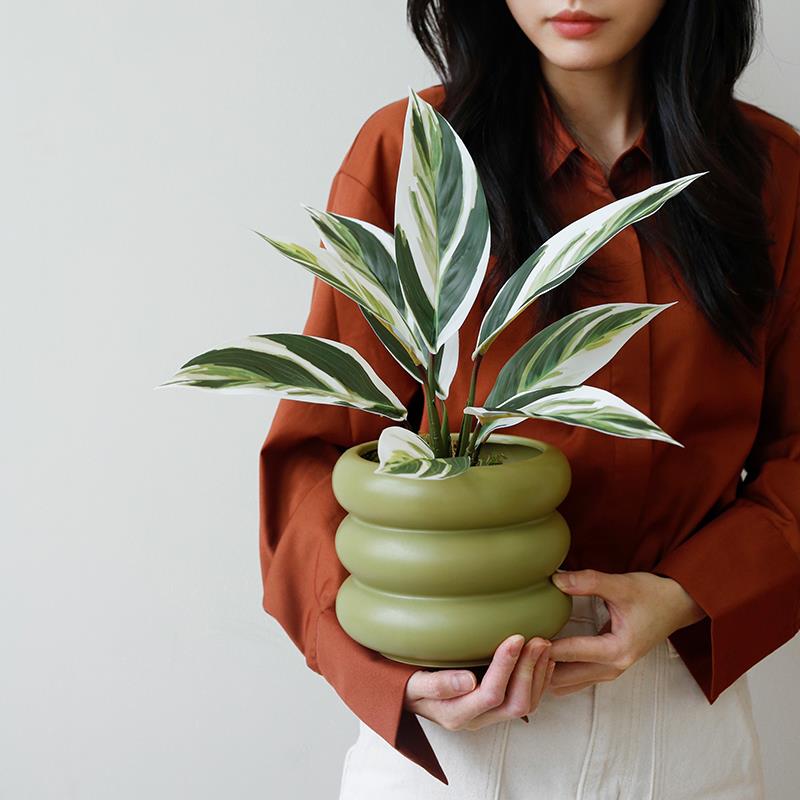 ladylike 彷真绿色植物苹 果叶室内客厅植物盆栽 万年青盆景花盆
