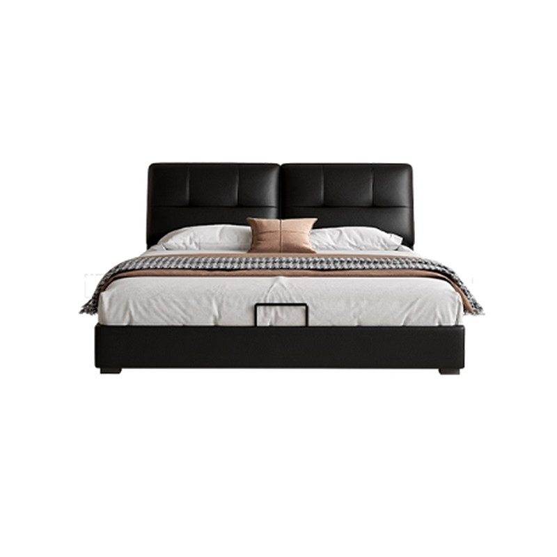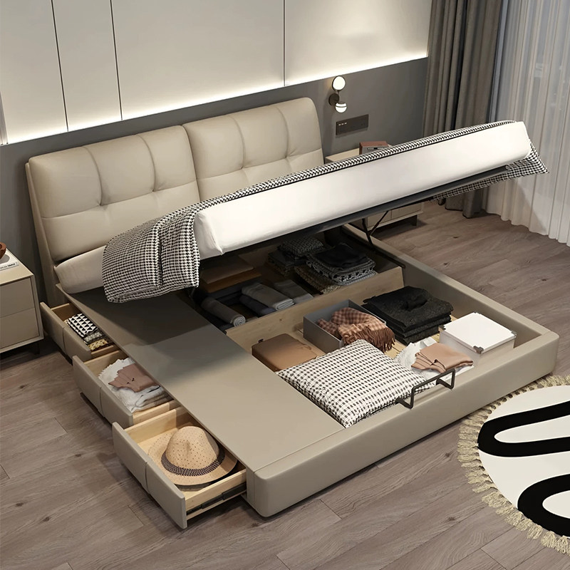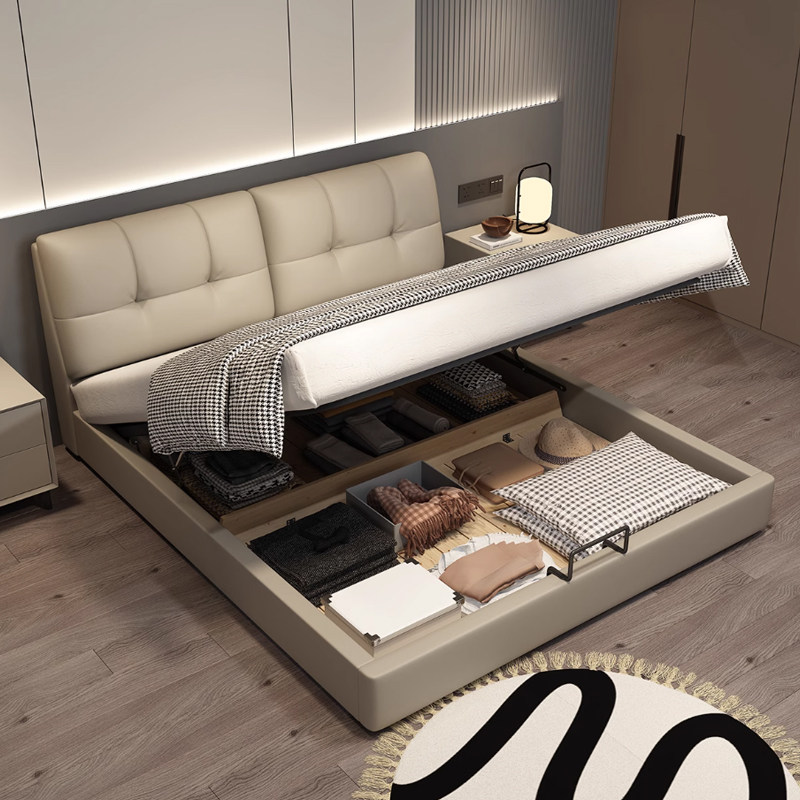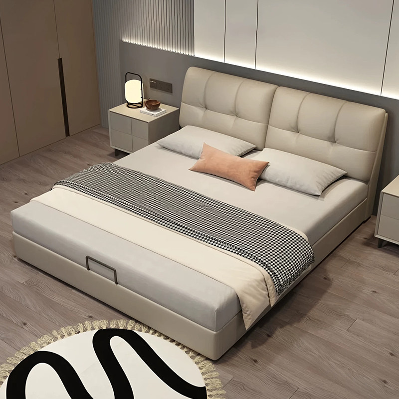 现代简约真皮床主卧中小户型高箱储物1.8m1.5m双人床升级实木框架