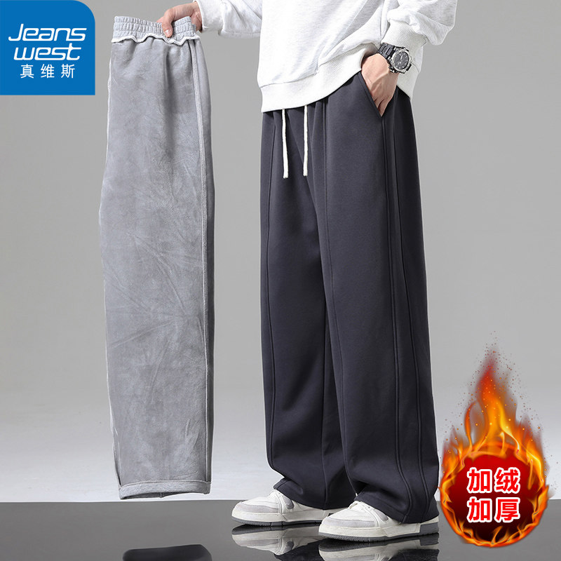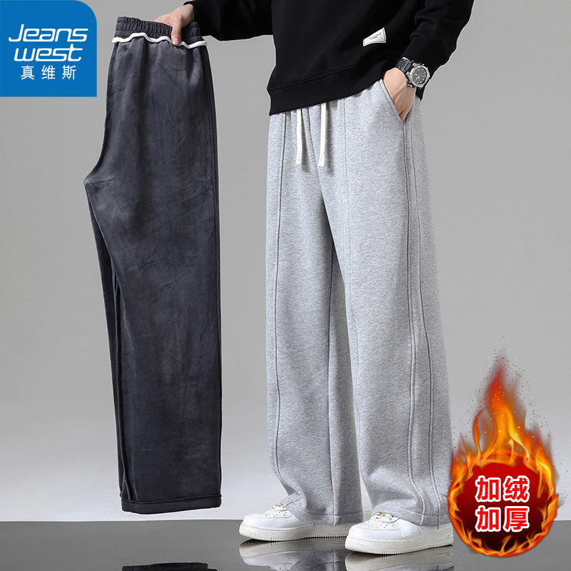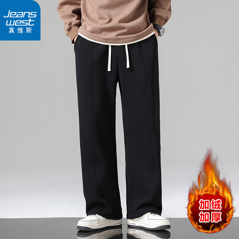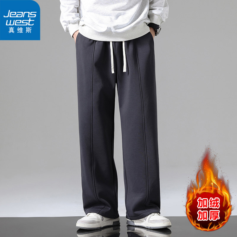 【真维斯】秋冬卫裤宽松直筒裤子加绒加厚九分裤休闲运动长裤男女