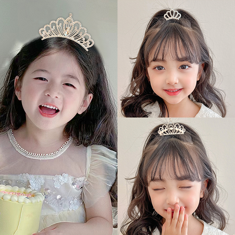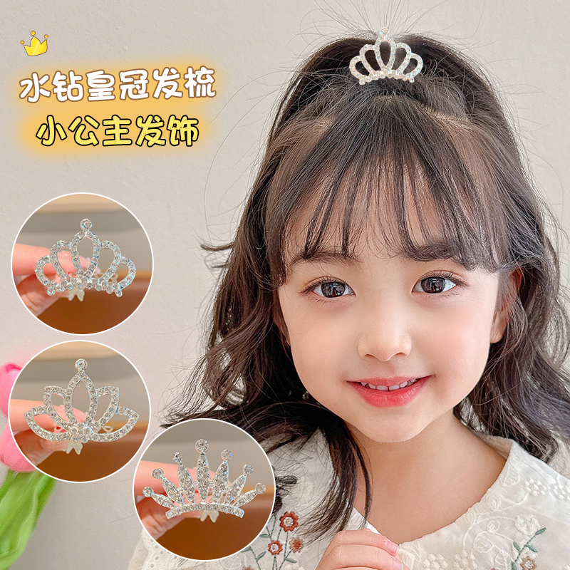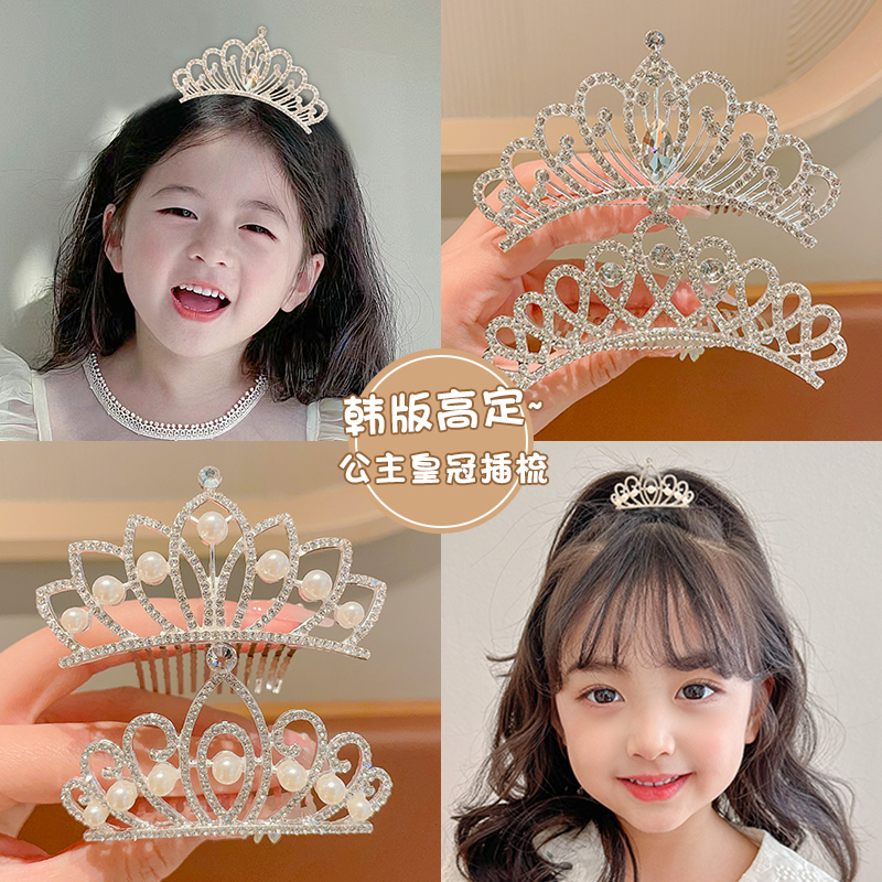 女童皇冠头饰插梳儿童可爱公主发饰节日发卡女孩珍珠水钻发夹发梳