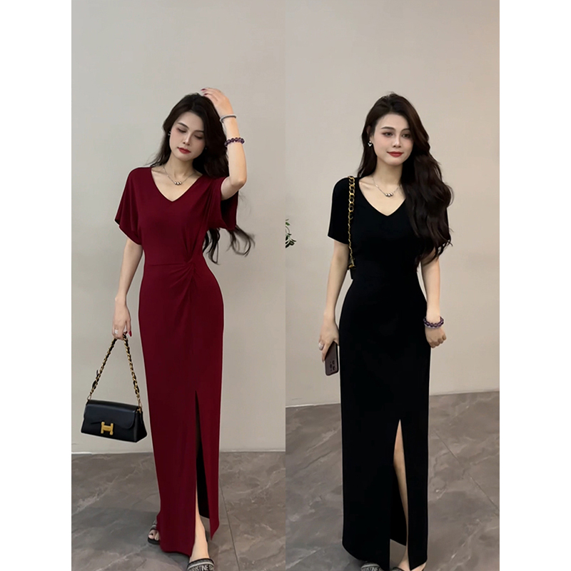 大婷婷 新款轻奢优雅长裙显瘦设计感夏季显瘦开叉连衣裙DT1272