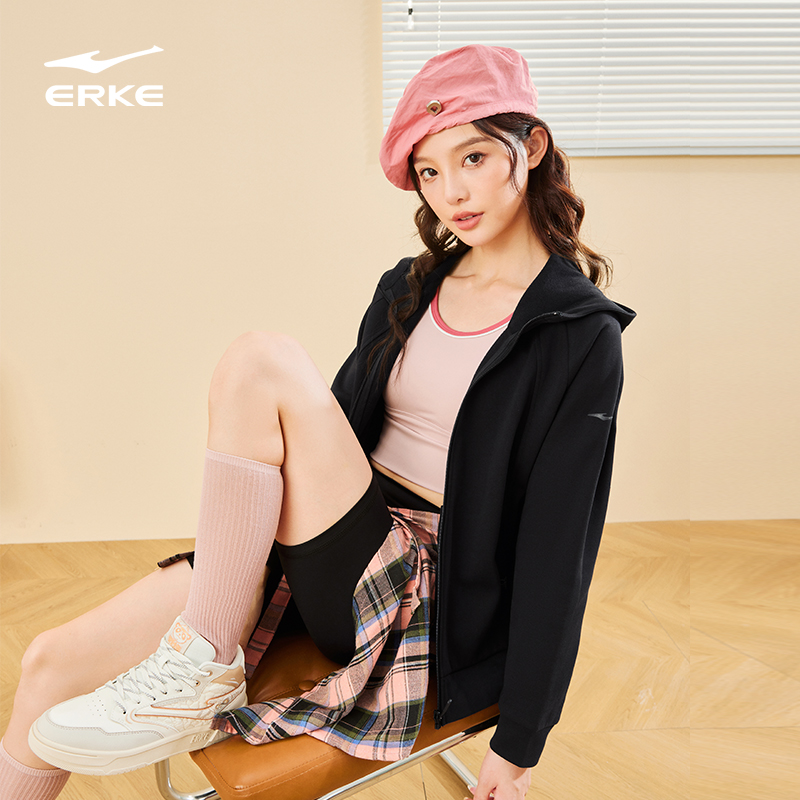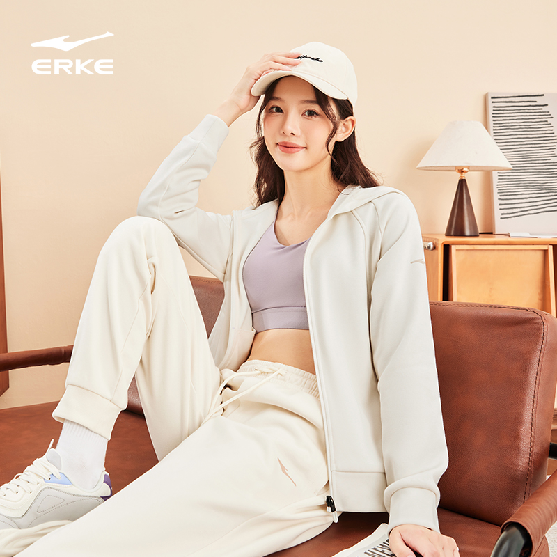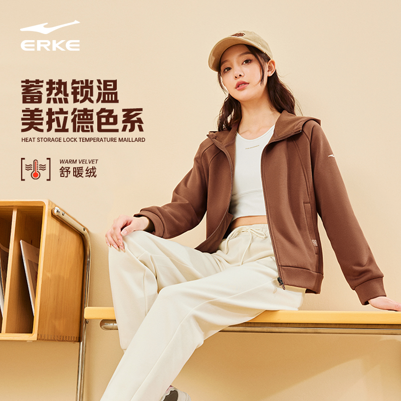 鸿星尔克外套女冬季新款女士修身加绒卫衣针织夹克运动服女装女款