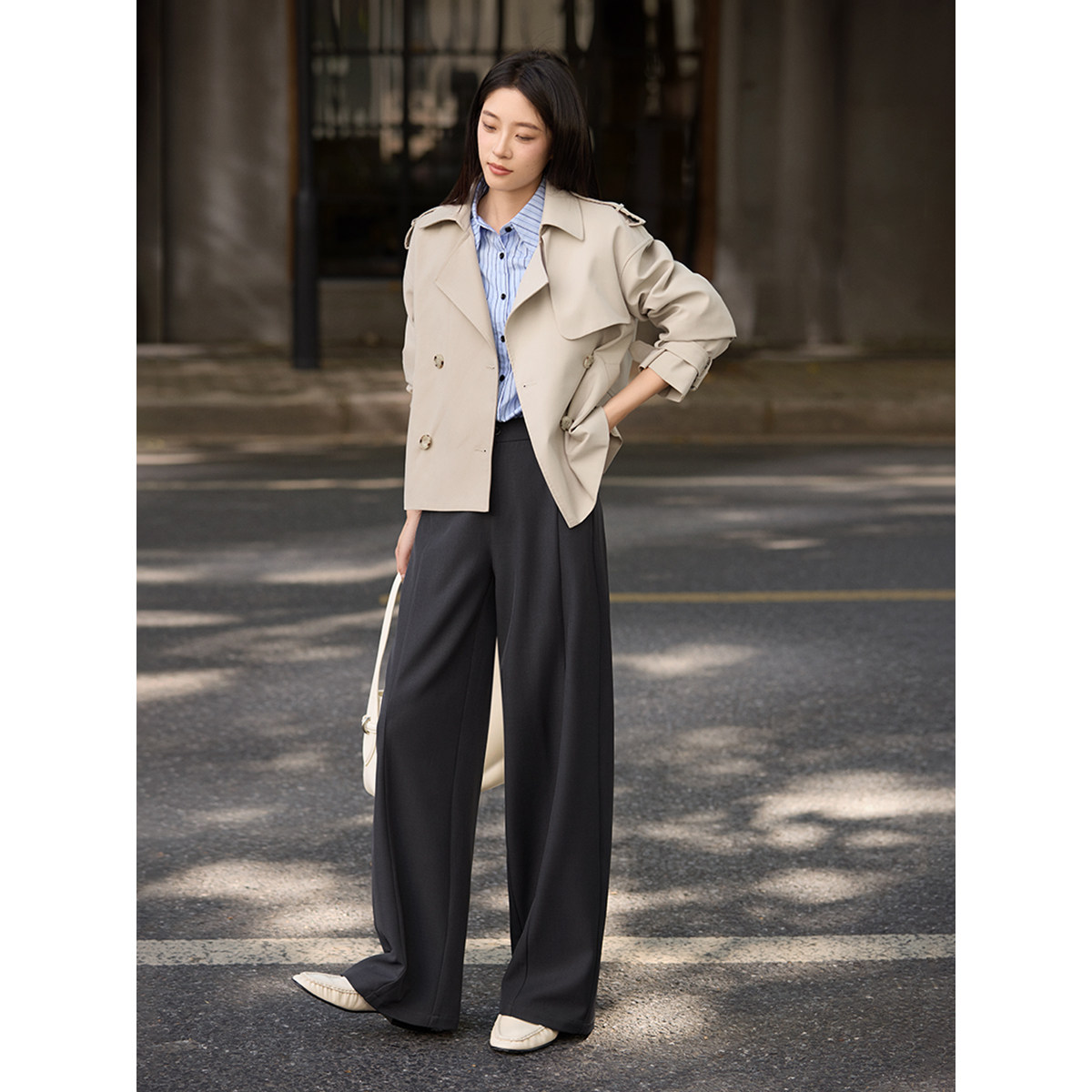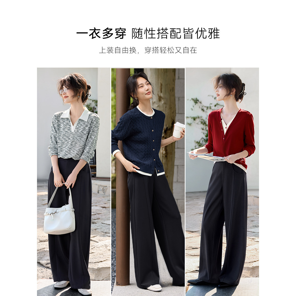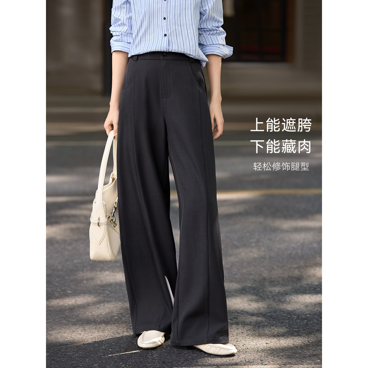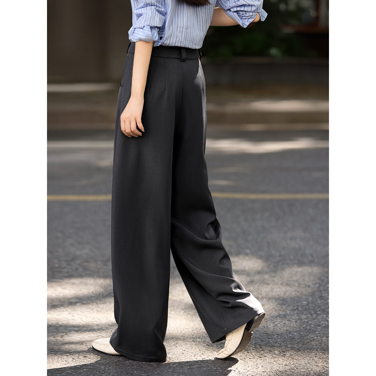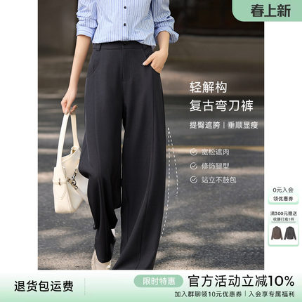 XWI欣未高腰显瘦解构弯刀休闲裤女秋季百搭通勤宽松阔腿西装长裤