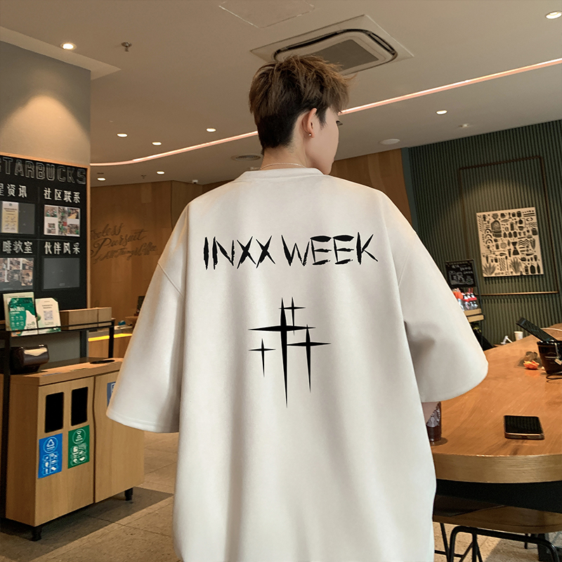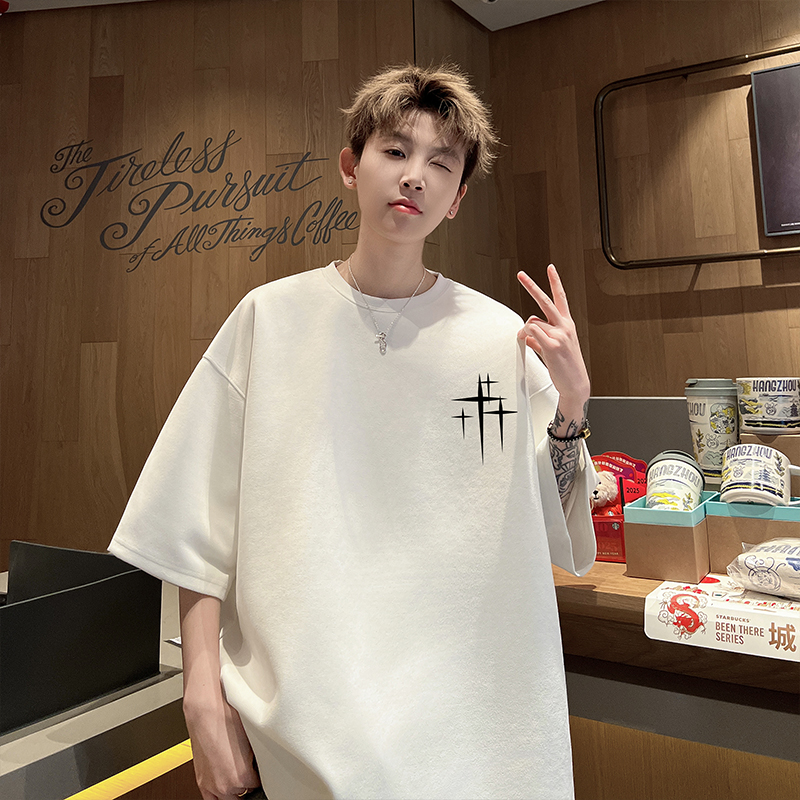 男士短袖2025新款美式高街潮牌上衣重磅青少年大码休闲半袖t恤衫