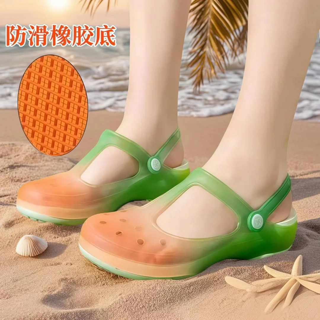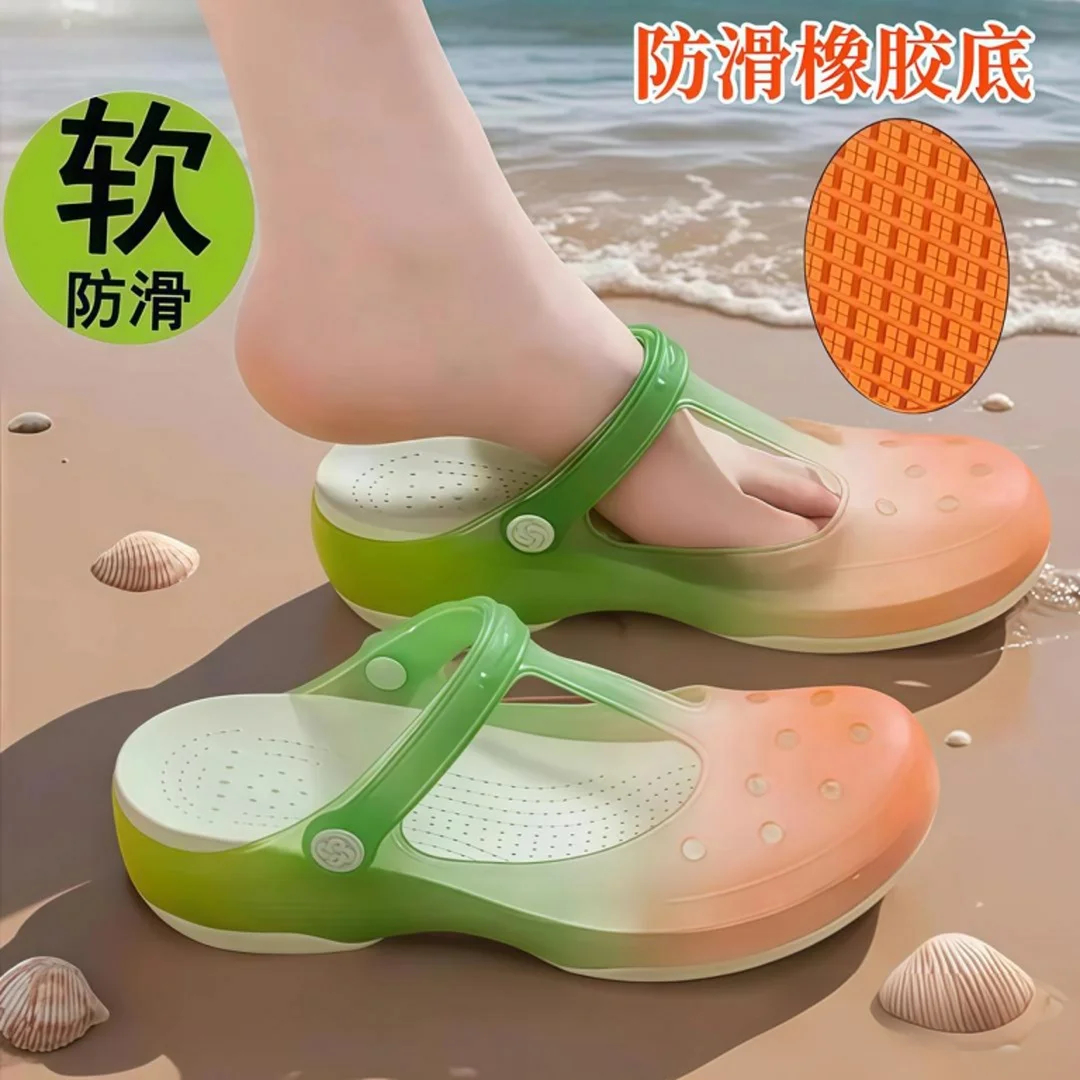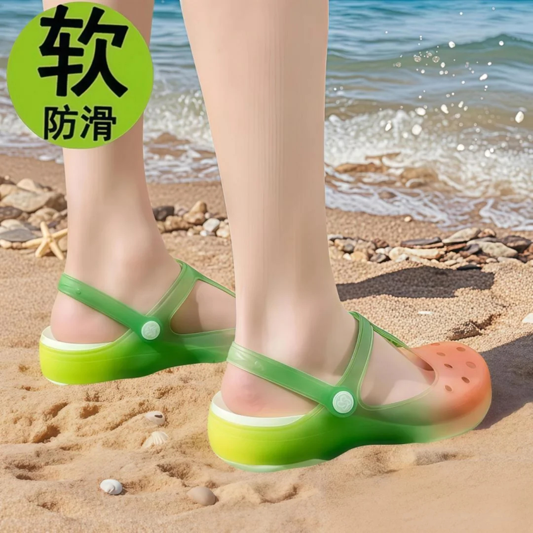 沙滩洞洞鞋女防滑外穿新款踩屎感妈妈凉拖鞋女夏季厚底包头果冻鞋