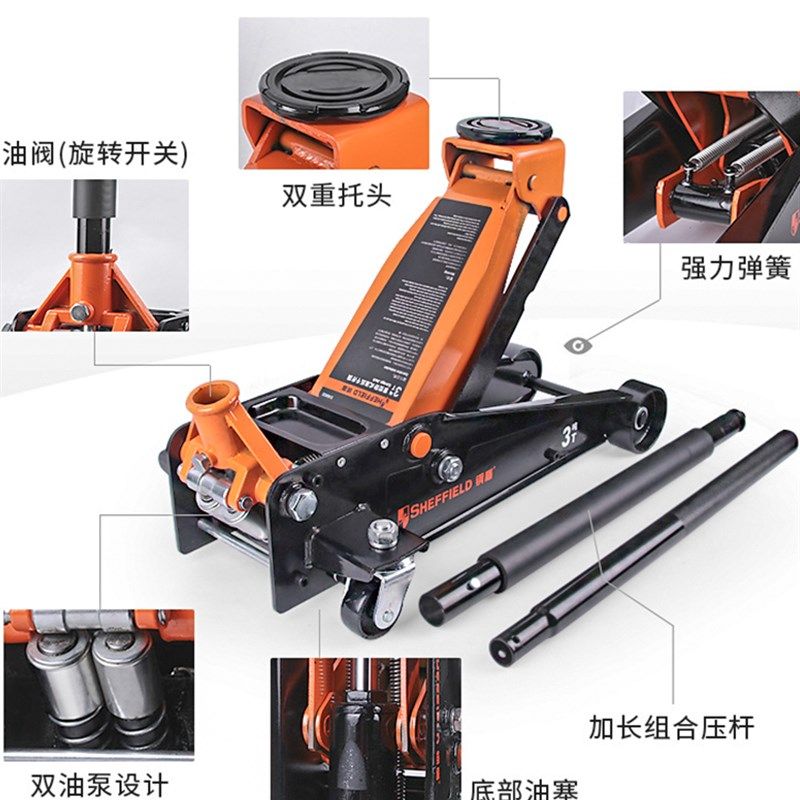 钢盾卧式千斤顶低位液压千金顶2.5T3T3.5T吨轿车换胎工具